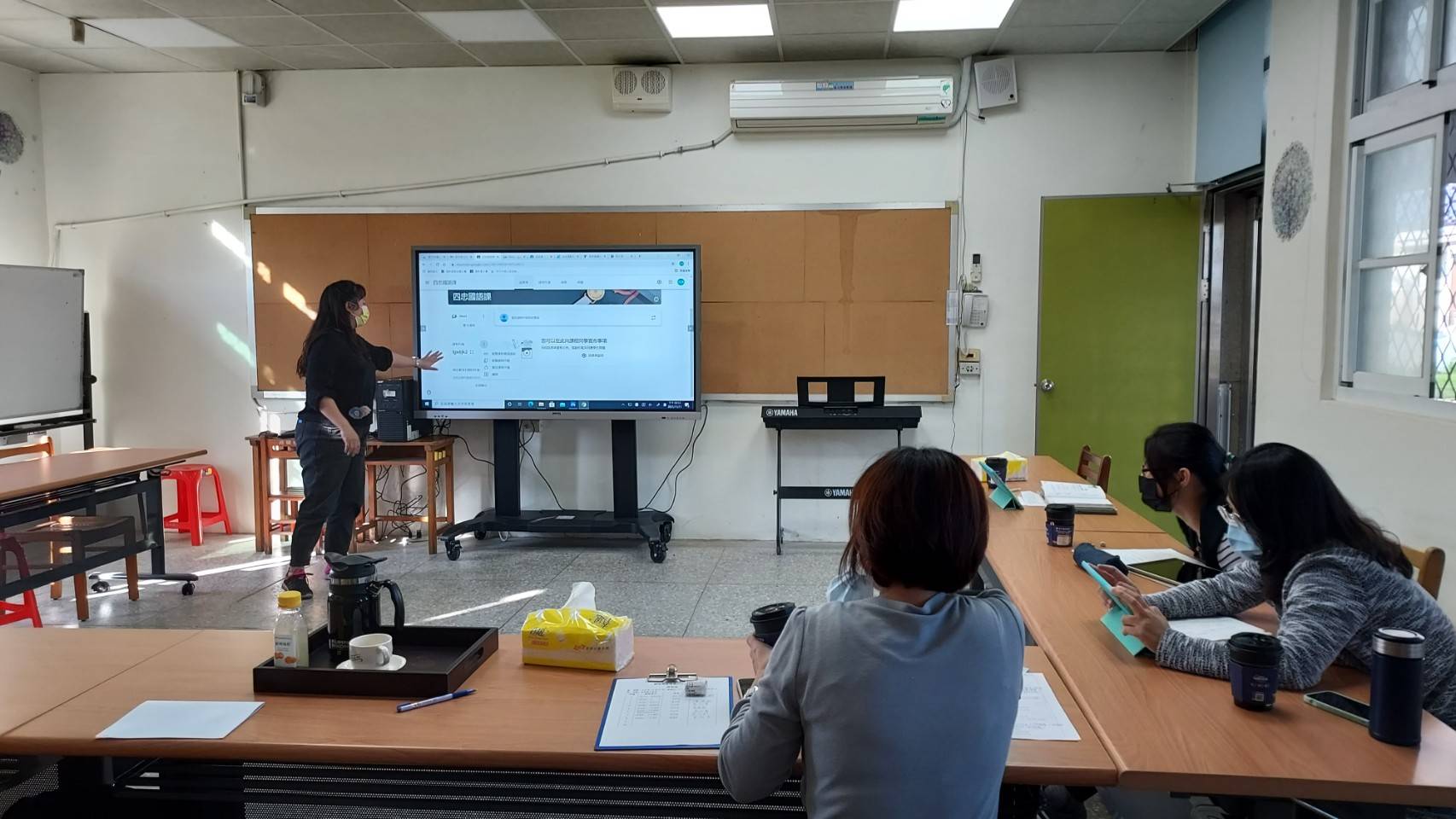 110.11.11 因應疫情,本校持續為港南教職增能,於本日下午於藝文教室內進行線上教學演練研習。