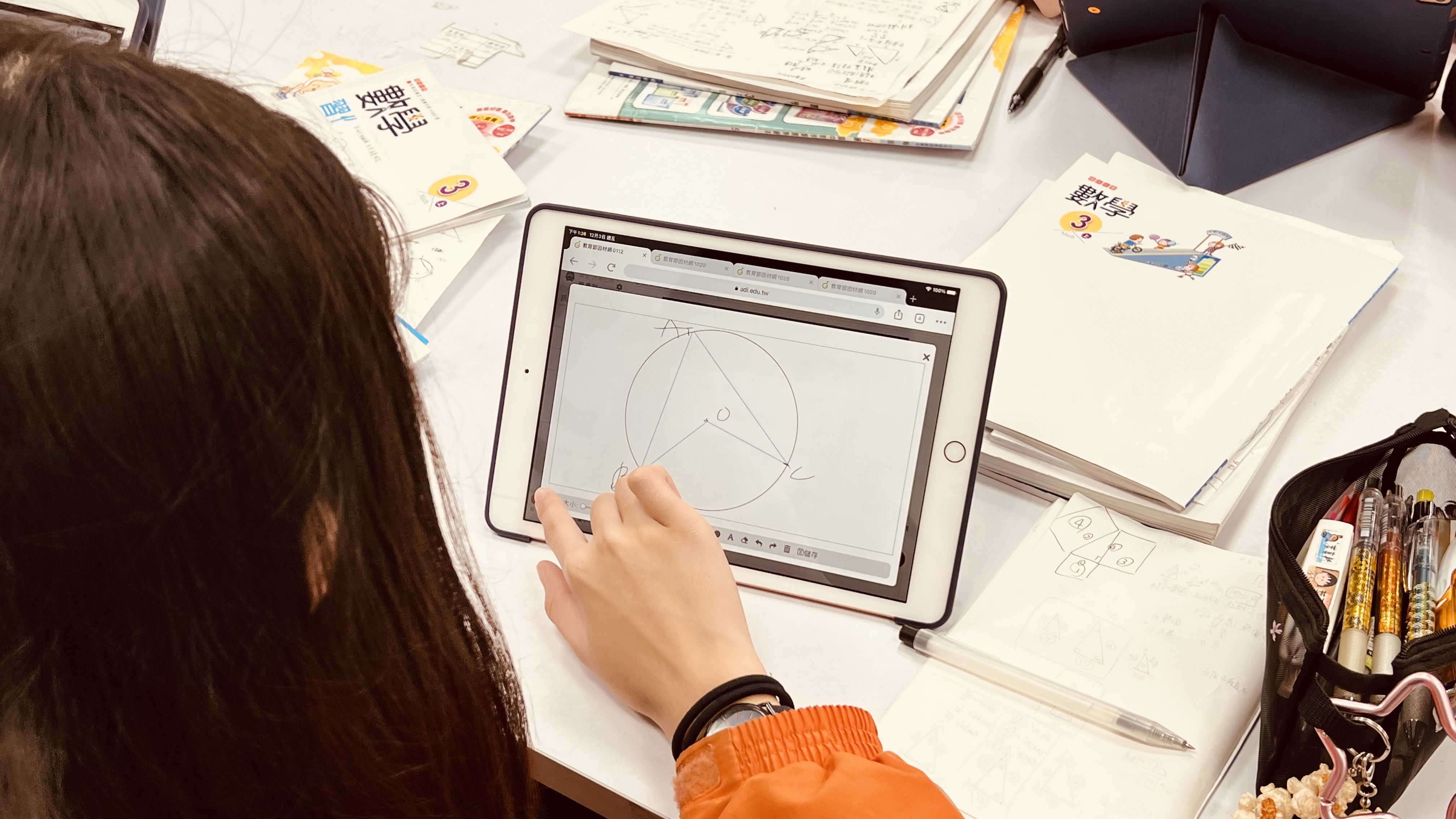 運用新的教學用具-平板,融入教育部因材網平台,也運用了教育部數位計畫所提供的教學模組四學模組來進行數位學習。