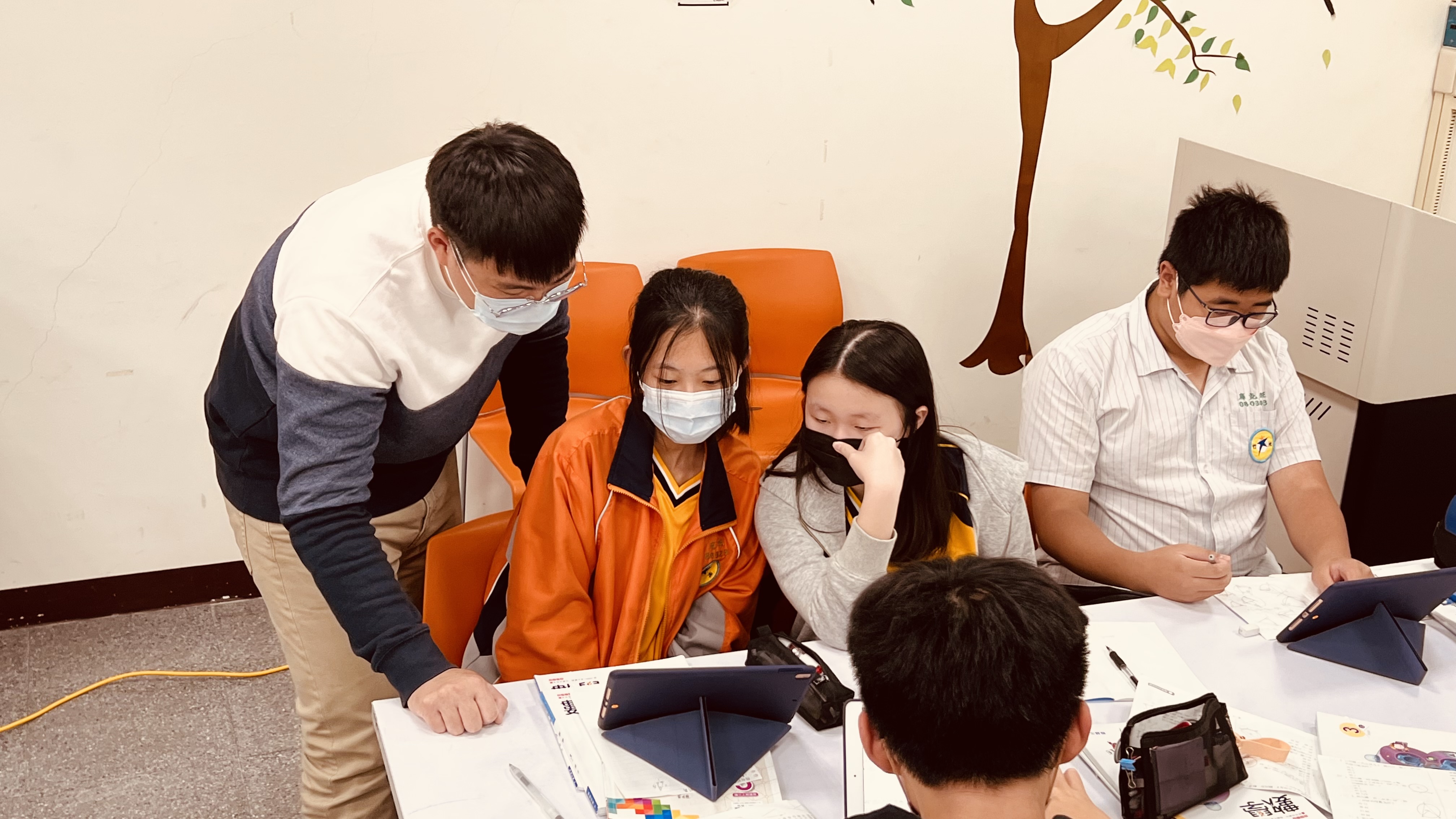 所謂的四學為學生自學、組內共學,組間互學和教師導學四個區塊。主任在學生自學和組內共學和教師導學的教學演示之下,給了觀課的老師很多收穫。在現場觀課的王子華教授也稱讚如此,只提供一個部分就是組間互學的部分要再設計教學活動,讓學生在組與組之間的互學模式能更清楚明白。