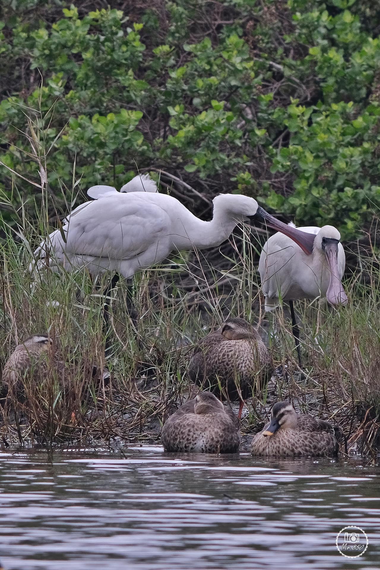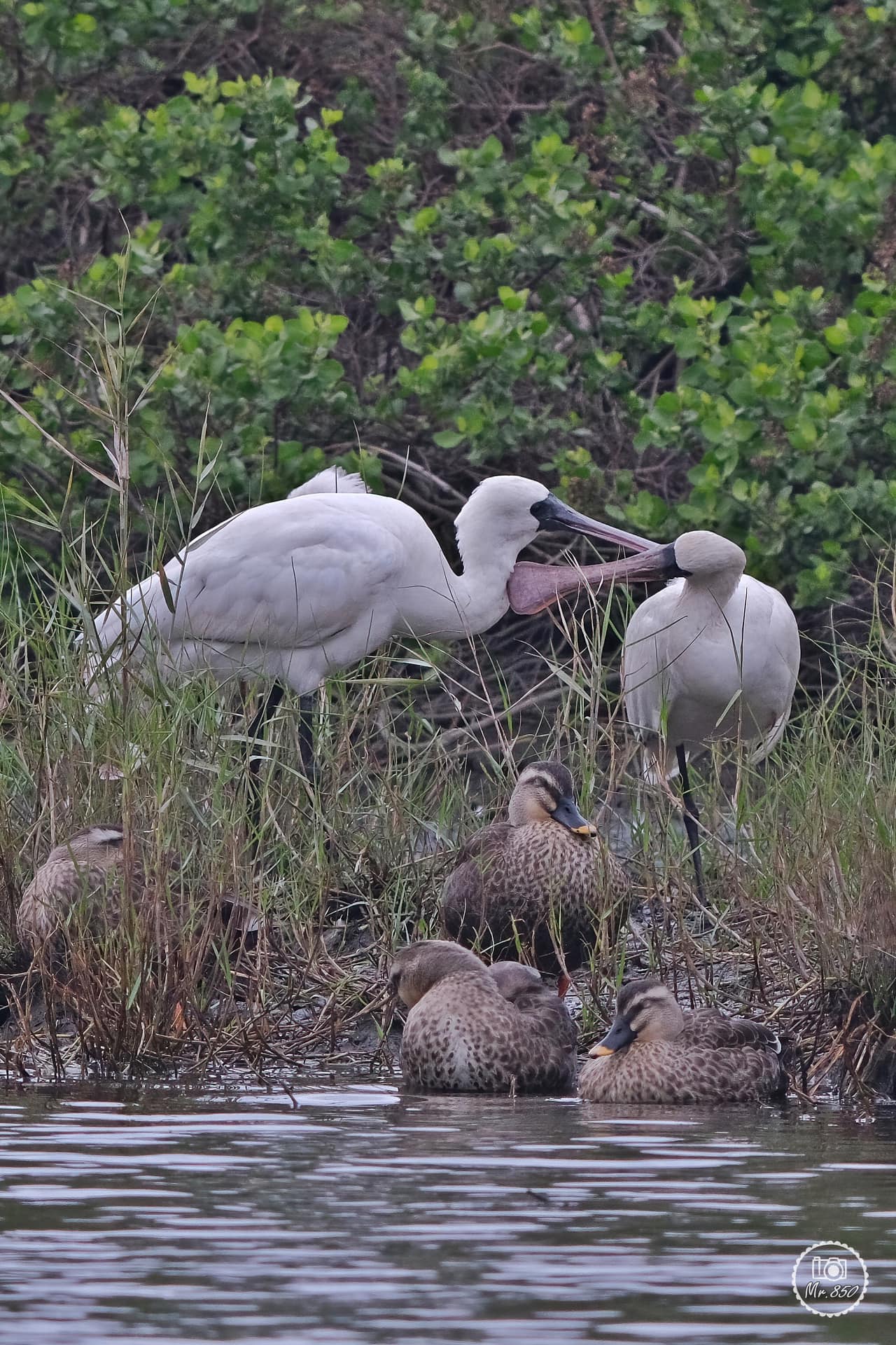 2017年李壽先博士在特有生物研究保育中心的座談會曾表示,在鳥類世界裡,不同種類雜交是很常見,而且早在1905年就發現有黑頭白䴉與黑面琵鷺雜交的記錄,中國成都動物園目前也有黑頭白䴉與黑面琵鷺雜交的個體存活著。