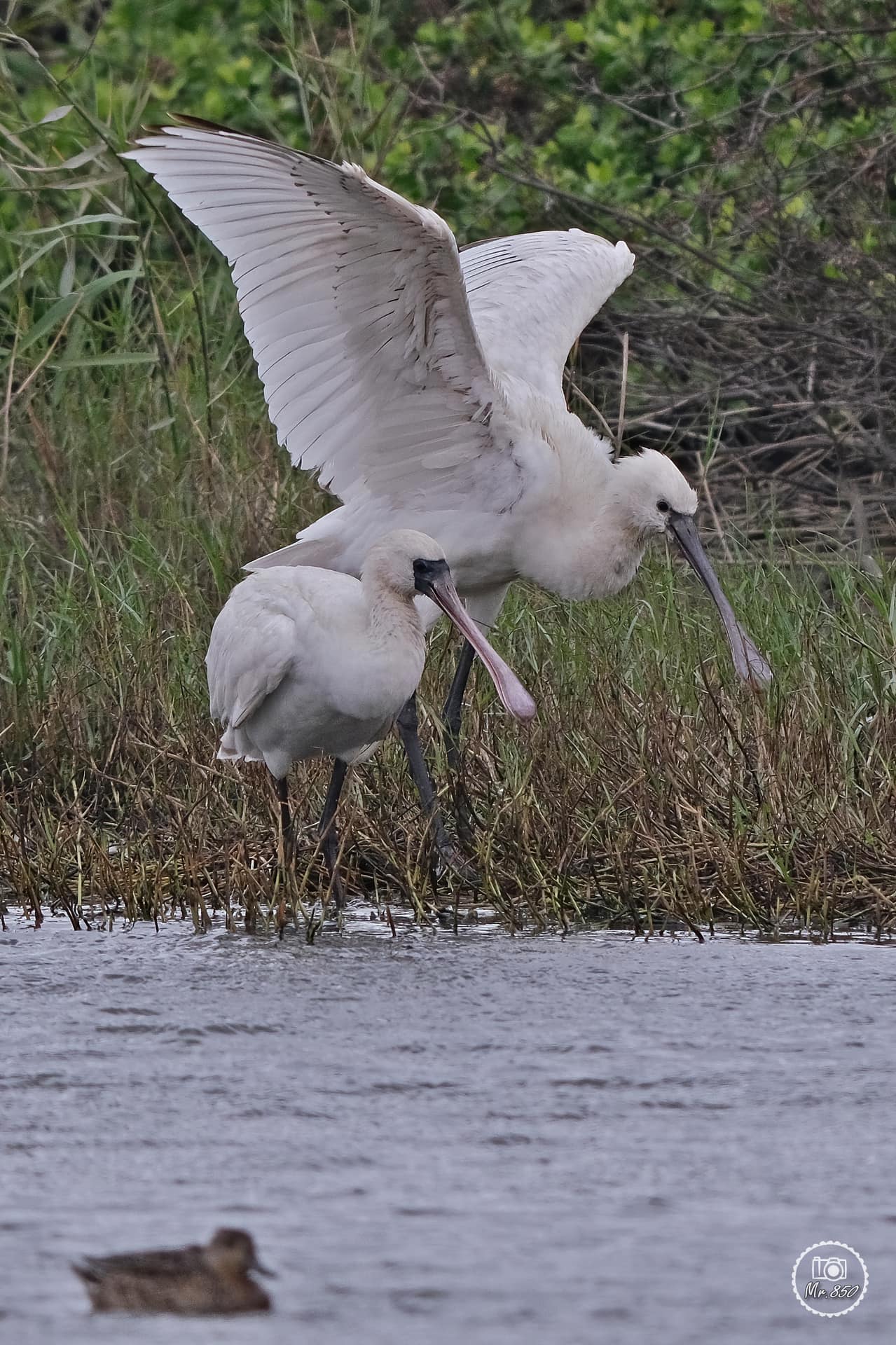 2014年「黑琵先生」王徵吉先生在接受自由時報訪談中提及,黑面琵鷺和白琵鷺雖是近親但不同種,理論上不應有交配繁殖情況。然而,他在2011年得知韓國疑有琵鷺「黑白配」的訊息,立即趕往韓國,並在西蠻島拍到琵鷺「黑白配」產子的畫面。2012年雖未發現,但2013年又拍到另一個黑白配的琵鷺家族。根據王先生的紀錄,雄白雌黑配的結果是小黑不是小白。