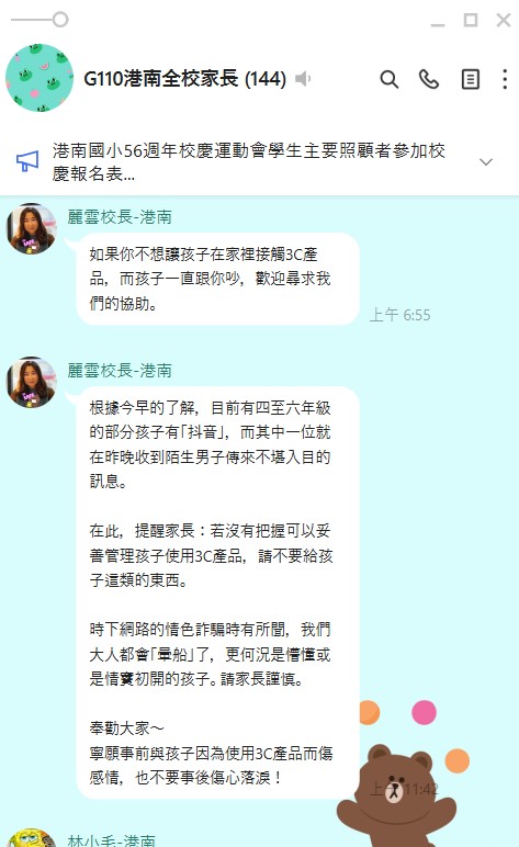 為了讓家長更清楚如何正確讓孩子使用3C產品,麗雲校長在本校的家長群組宣導相關文章,讓我們在這網路世代可以跟著孩子共學共好。