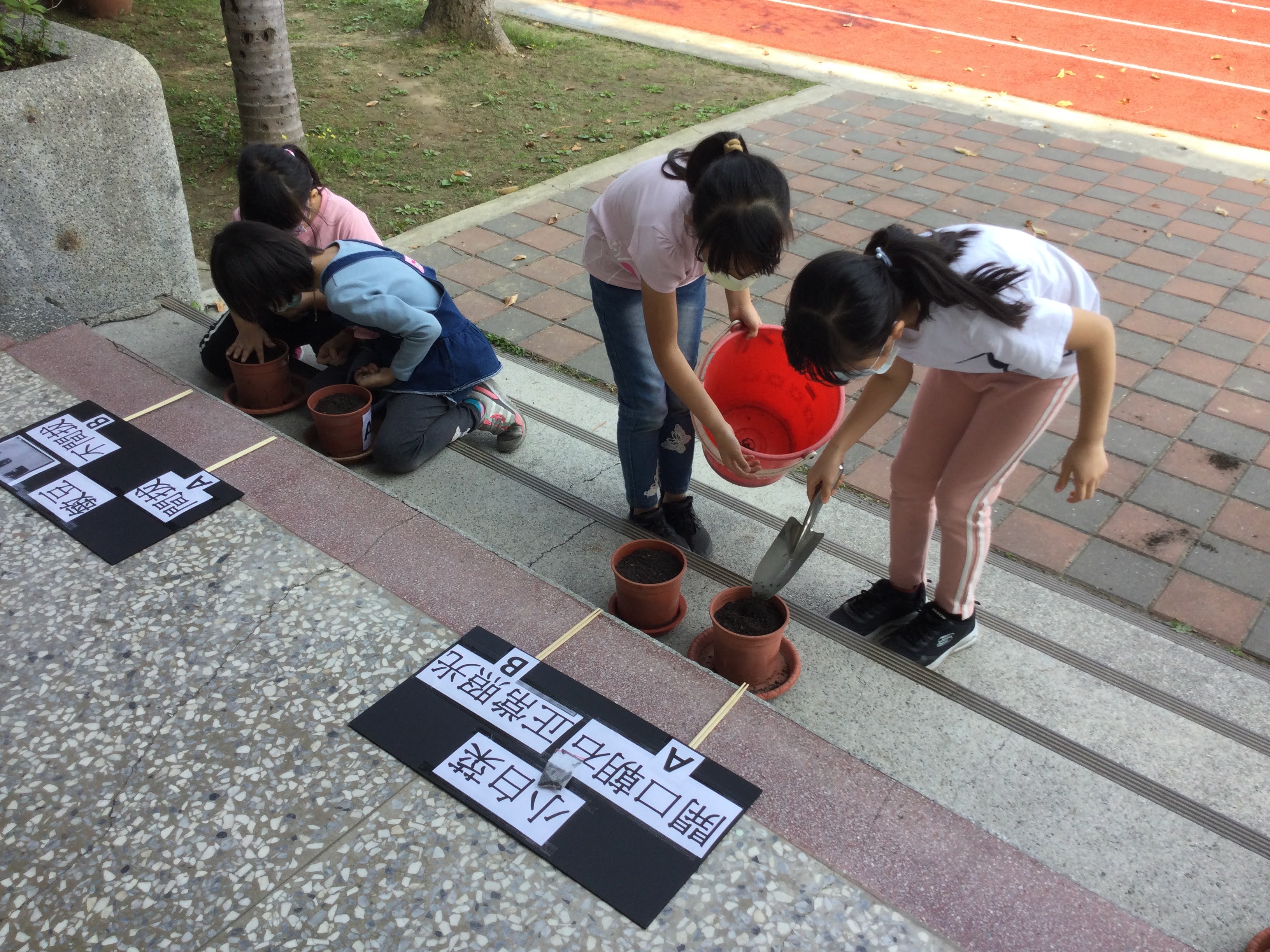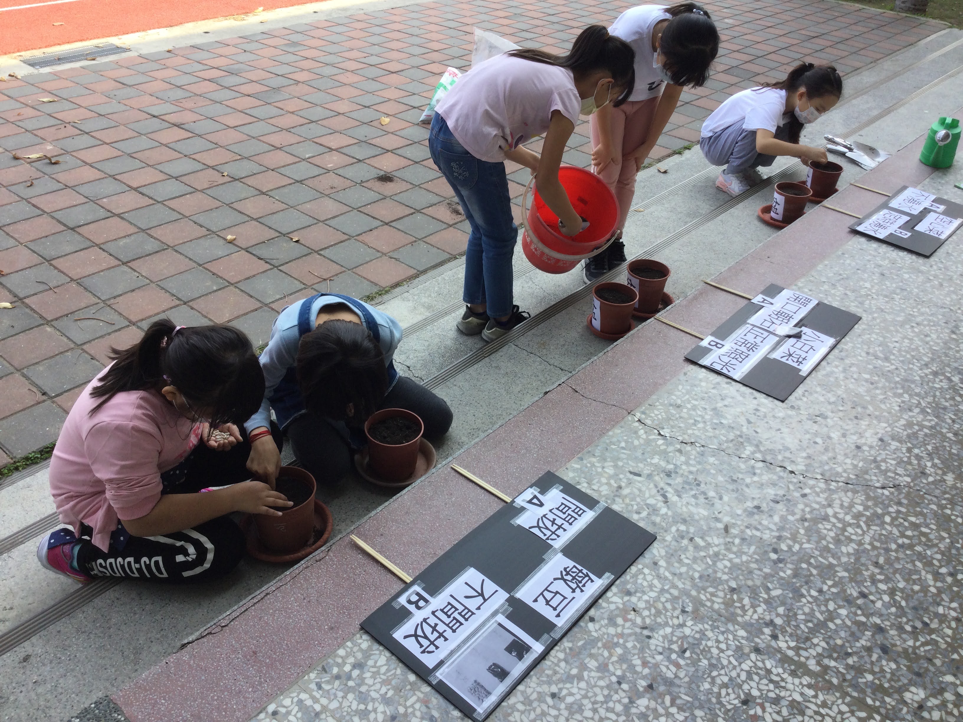 今日在港南三年級的自然課第一單元快樂小農夫,由蕙風老師帶領小孩一同種植蔬菜,本屆三年級是108課綱,108課綱的「核心素養」精神,以「自發」、「互動」、「共好」(合稱「自動好」)。108課綱以「成就每一個孩子——適性揚才、終身學習」為願景,以學生為學習的主體,藉由種植蔬菜讓學生動手自己來,之後的照顧及觀察紀錄也都是學生自動自發去學習及參與。