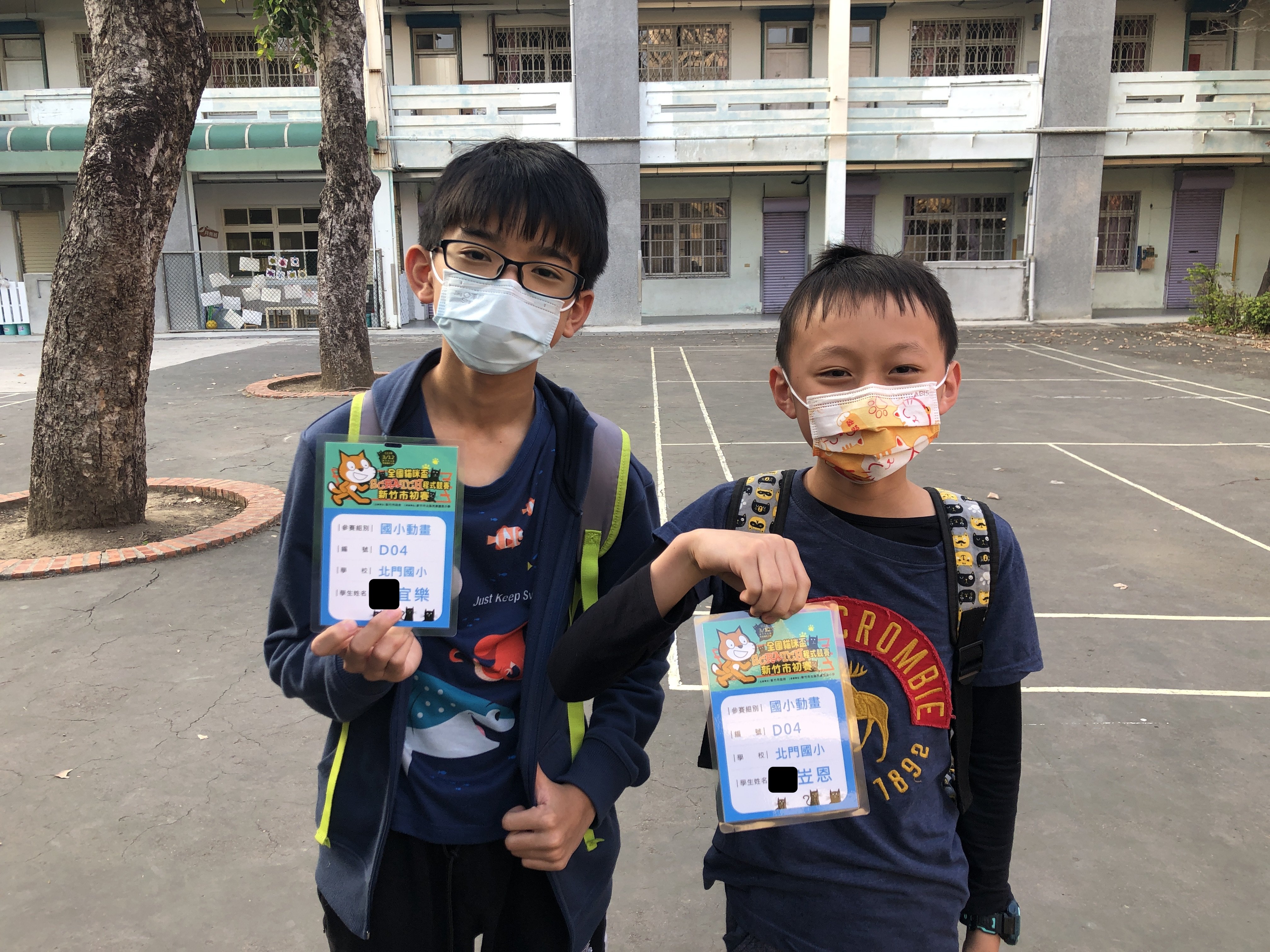 北門國小六年級四位同學參加全國貓咪盃SCRATCH程式競賽新竹市初賽,3/13(日)於民富國小舉行,六年2班昕典、泊泉同學參加遊戲組,六年3班宜樂、岦恩同學參加動畫組,感謝指導老師及家長的協助,順利參賽完成。