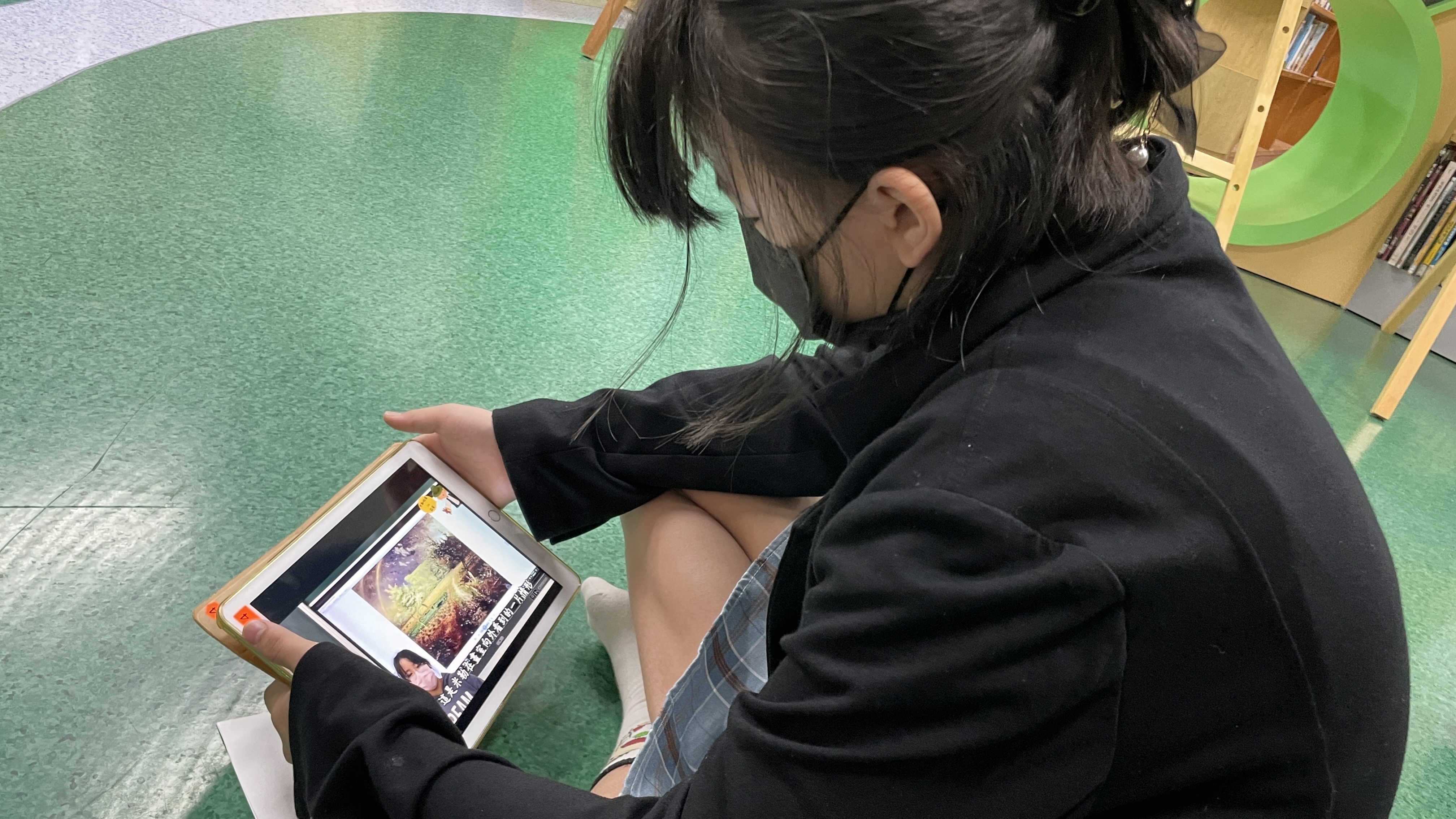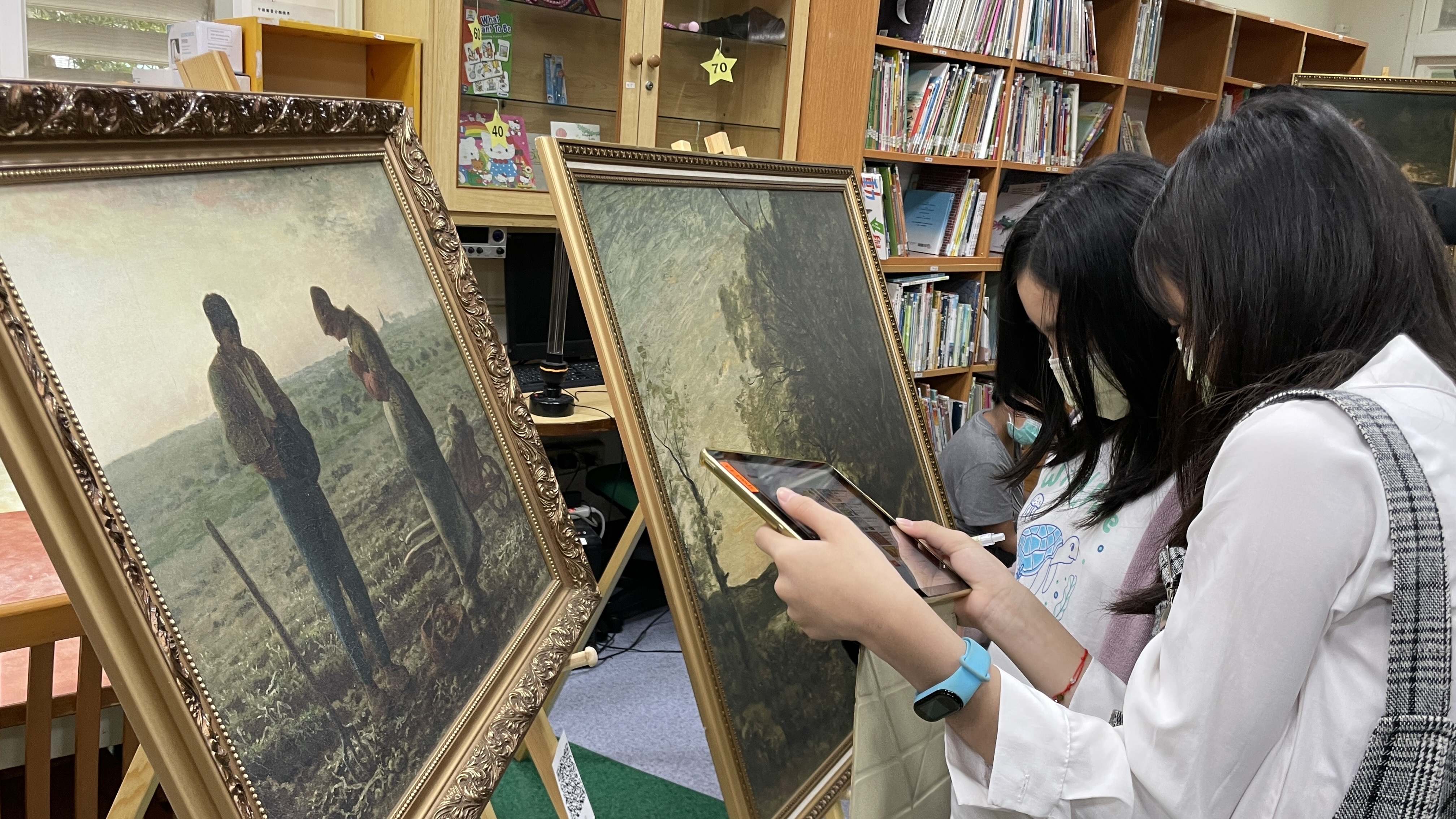在課程中認識米勒及畫作之後,經過反芻幾輪,轉為自己的語言、加上自己對畫作的賞析及感想撰寫導覽稿,反覆背誦到滾瓜爛熟,六甲的哥哥姐姐準備好帶領各位進入米勒及田園畫家們的世界~進行畫作的導覽,邀請學弟學妹們一同培養藝術素養。低年級的孩子向六年甲班預約時間進行現場導覽,中高年級的孩子安排一節課,使用ipad至圖書館進行數位自主學習,觀看哥哥姐姐們錄製的數位導覽。聽完導覽員的解說後,再細品畫作,別有一番滋味呢!