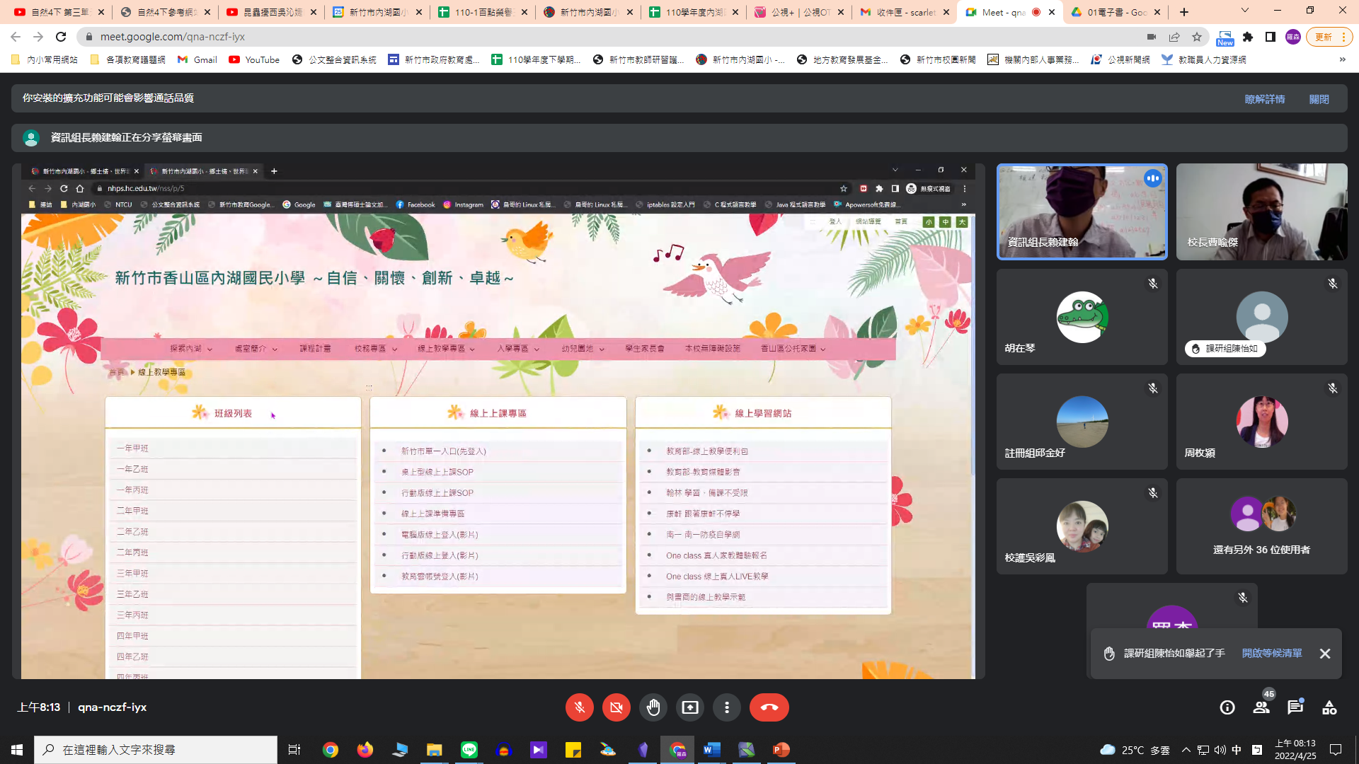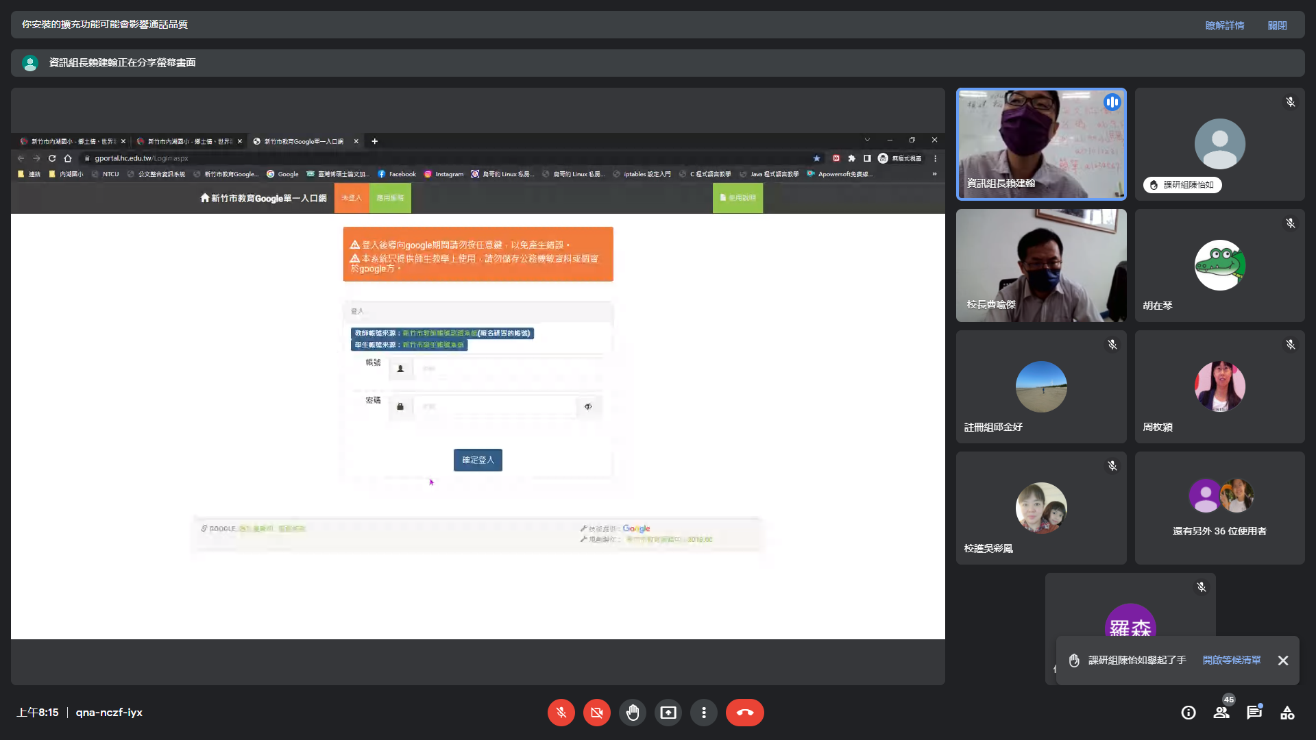 疫情嚴峻,在無法避免新冠肺炎擴散的情況下,為了讓學校親師生熟悉線上教學流程,在本校的晨會時間進行線上教學資源宣導,資訊組長也將校網進行調整,希望讓親師生能一致地在校網裡,了解線上教學如何準備。