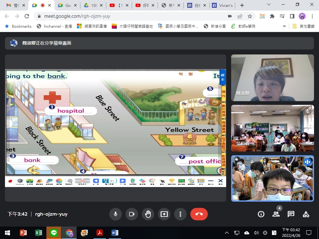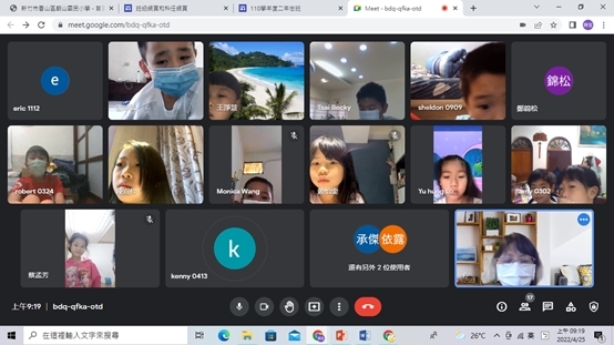 朝山認真的老師們,為了增加孩子線上學習的臨場感,有的老師利用電腦教室,讓每個孩子可以坐在螢幕前用視訊方式跟老師互動;有的老師讓孩子利用平板開啟麥克風、打字留言、按揮手表示「舉手」等功能,並開啟鏡頭讓老師看看他們;或是在教室裡用google meet上課時,同時在教室前方架設webcam視訊攝影機,這樣線上上課老師就可以看到全班的孩子,也可以聽到孩子的回應。