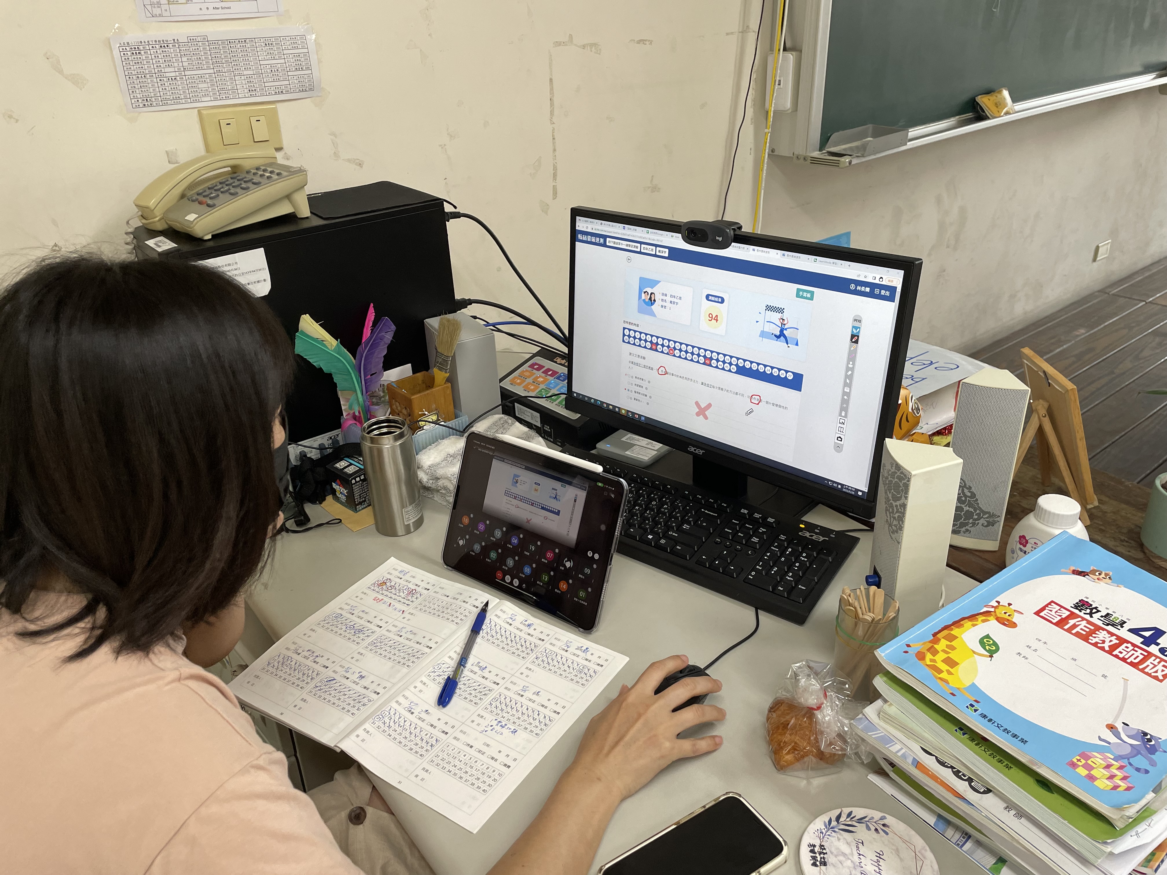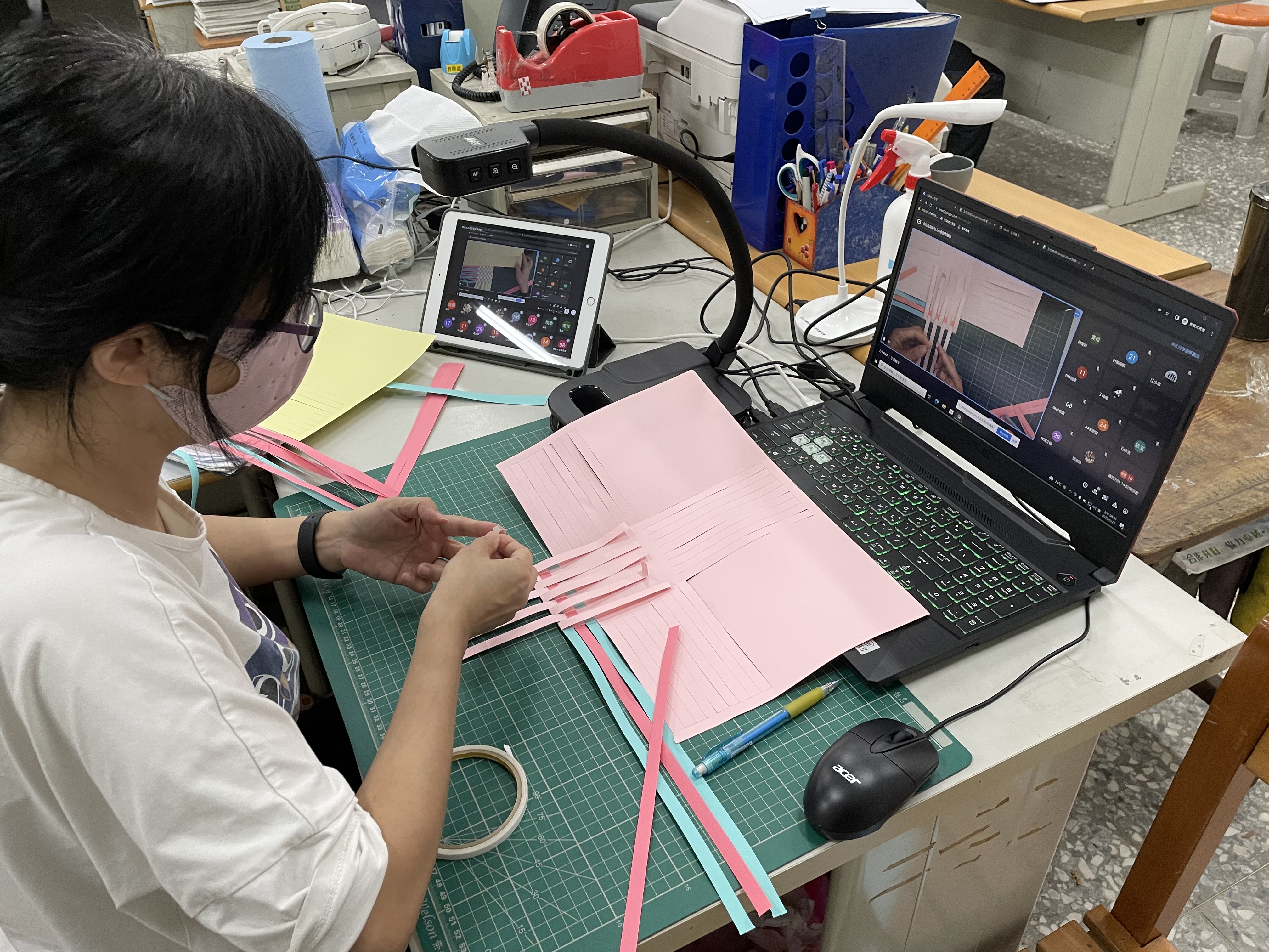 如果實體教學備課力道是100%,那線上教學的備課力道是200%,甚至超越。為了線上教學,每位老師都將平日的演練成果,規劃了一節節活潑而有效率的遠距教學。師生隔著一道屏幕,透過網路線的串聯,教師要在短短的課堂時間內,有別於傳統教室內的上課方式,遠距教學要將課程重點演示、班級經營、線上評量、線下派發作業……等活動,通通濃縮在屏幕中,都是有別於過往的挑戰。