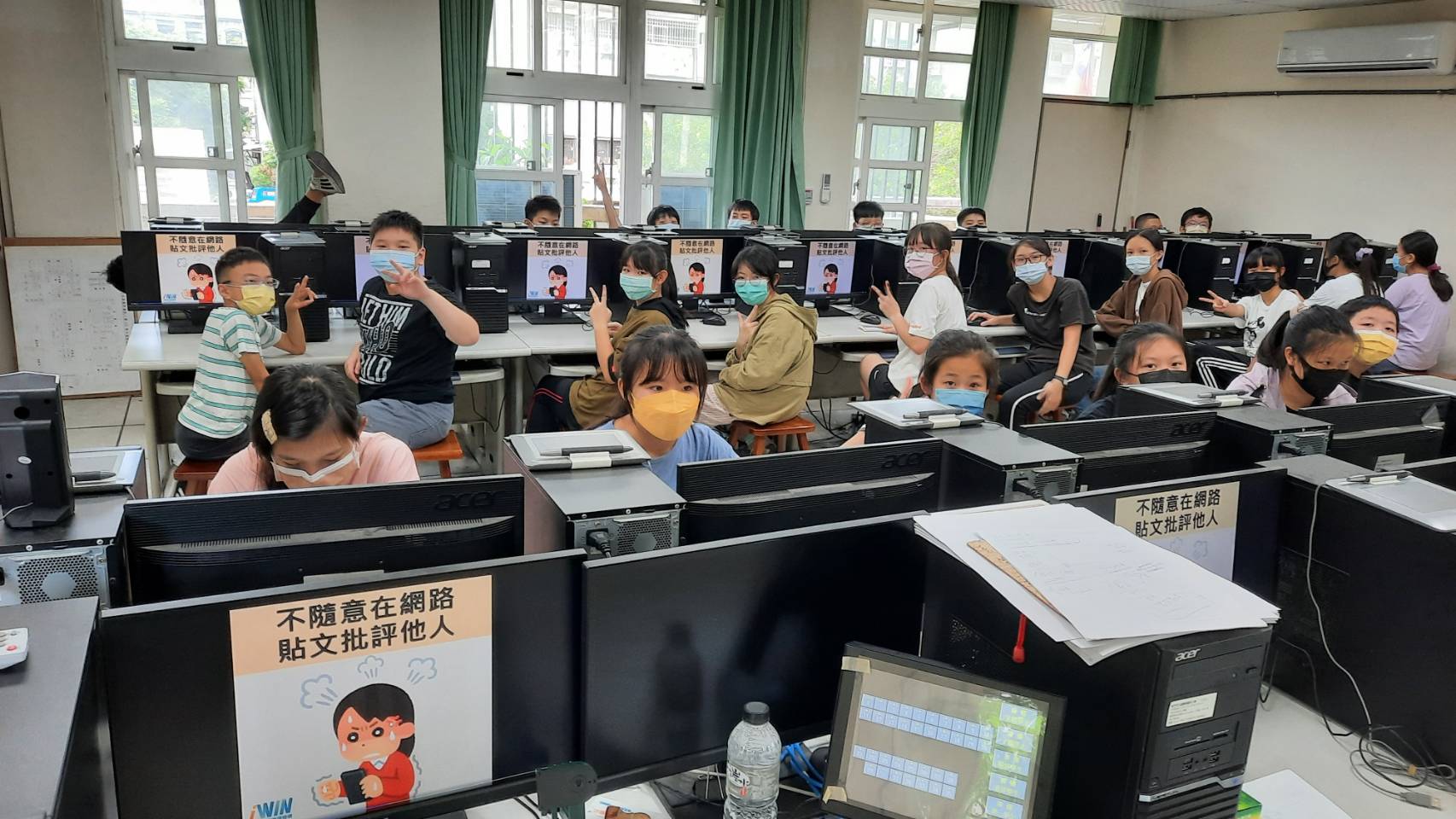 資訊課向學生宣導假期健康上網(如:網路交友、網路成癮)及網路使用法律常識(如:公然侮辱與毀謗、網路霸凌、網路詐騙)。