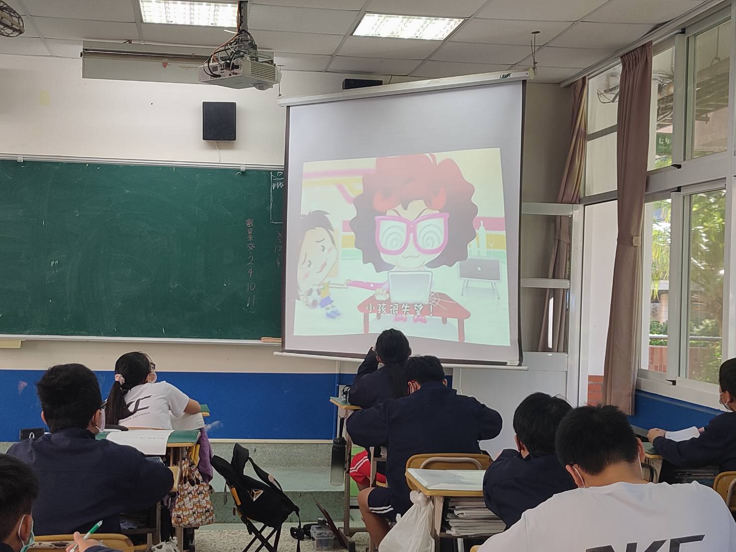111年6月22日晨間早修時間,透過網路素養提升的短片宣導防制網路犯罪,(宣導內容含:防範高科技換臉術、避免成為網路霸凌者)希望藉由動畫的活潑內容讓同學們避免成為網路受害人,更避免不小心成為加害人,善加利用網路的便利,但別讓網路影響了我們的生活喔。