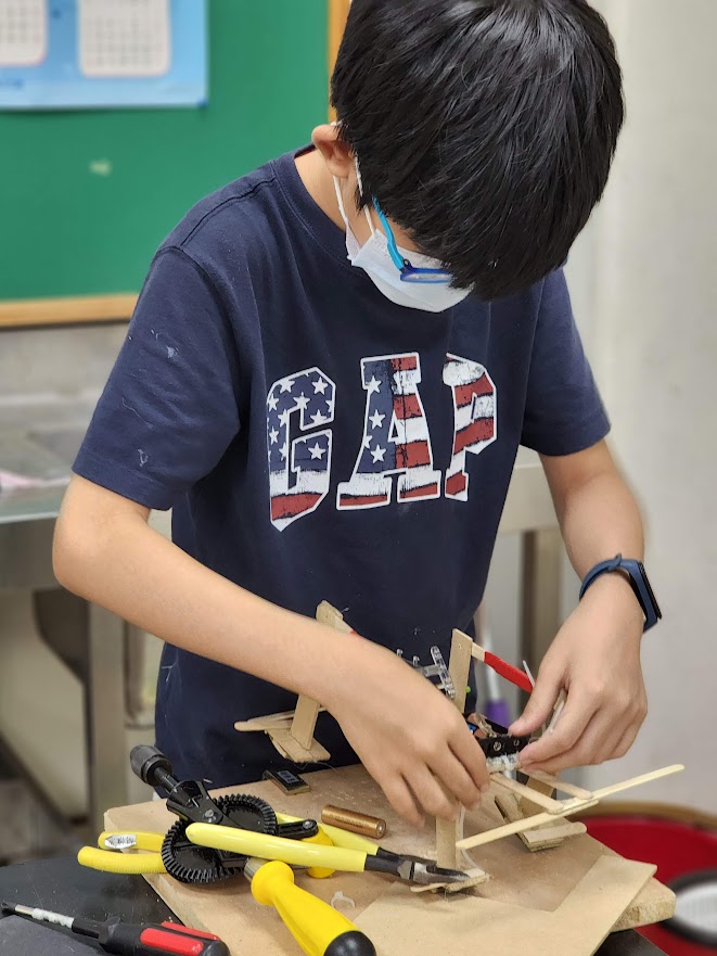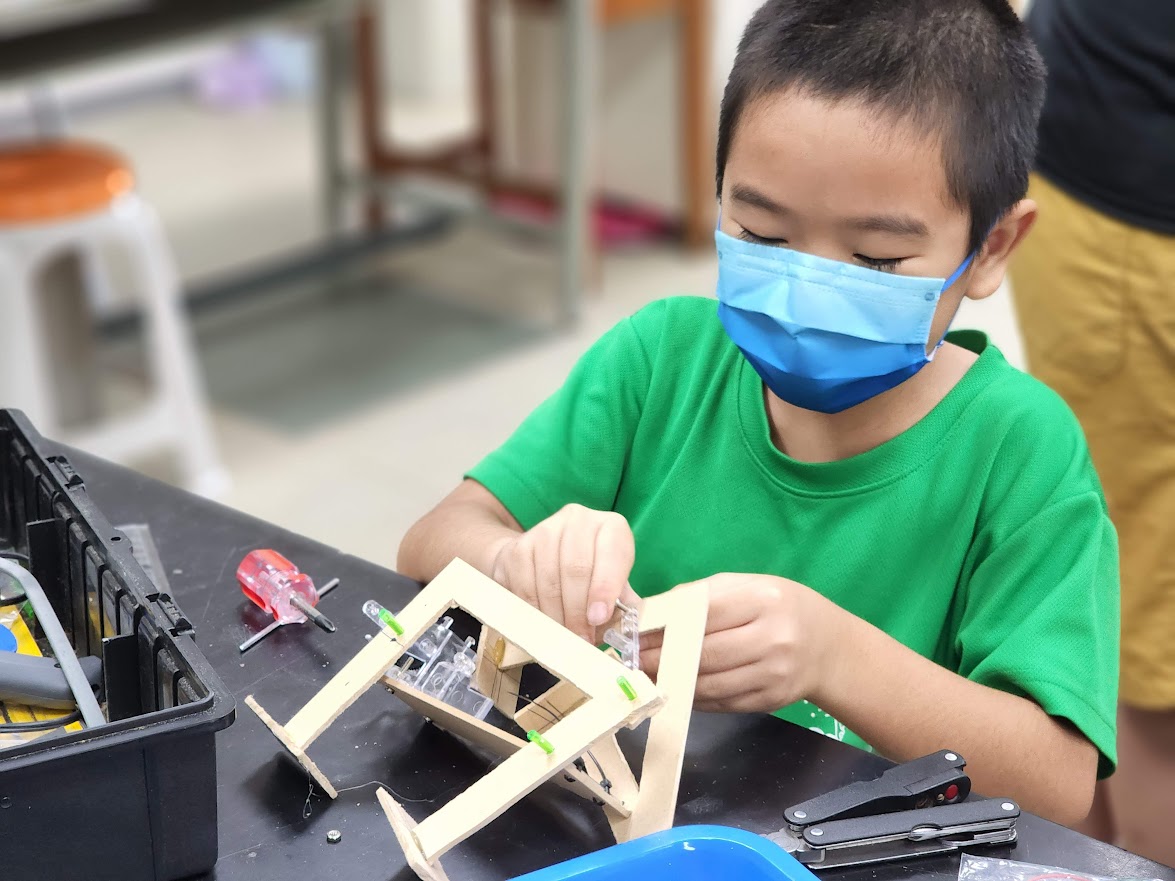 《萬獸之王--百變機器人創客營隊活動》來囉!在藝紘老師的指導帶領之下,孩子們從認識機械動作的原理、工具的使用、自行設計組裝會行走的仿生機器獸、再進行拔河或競速競賽。孩子們透過動手實作,將想像創意具體實現,參與營隊活動的每個孩子,學習都很投入及專注,遇到問題想辦法解決,完成作品之後,都很有成就感!在跨域學習、強調整合應用的時代,希望提供孩子創新思考、設計實作、合作分享的學習機會,逐漸奠基面對未來世界的素養!