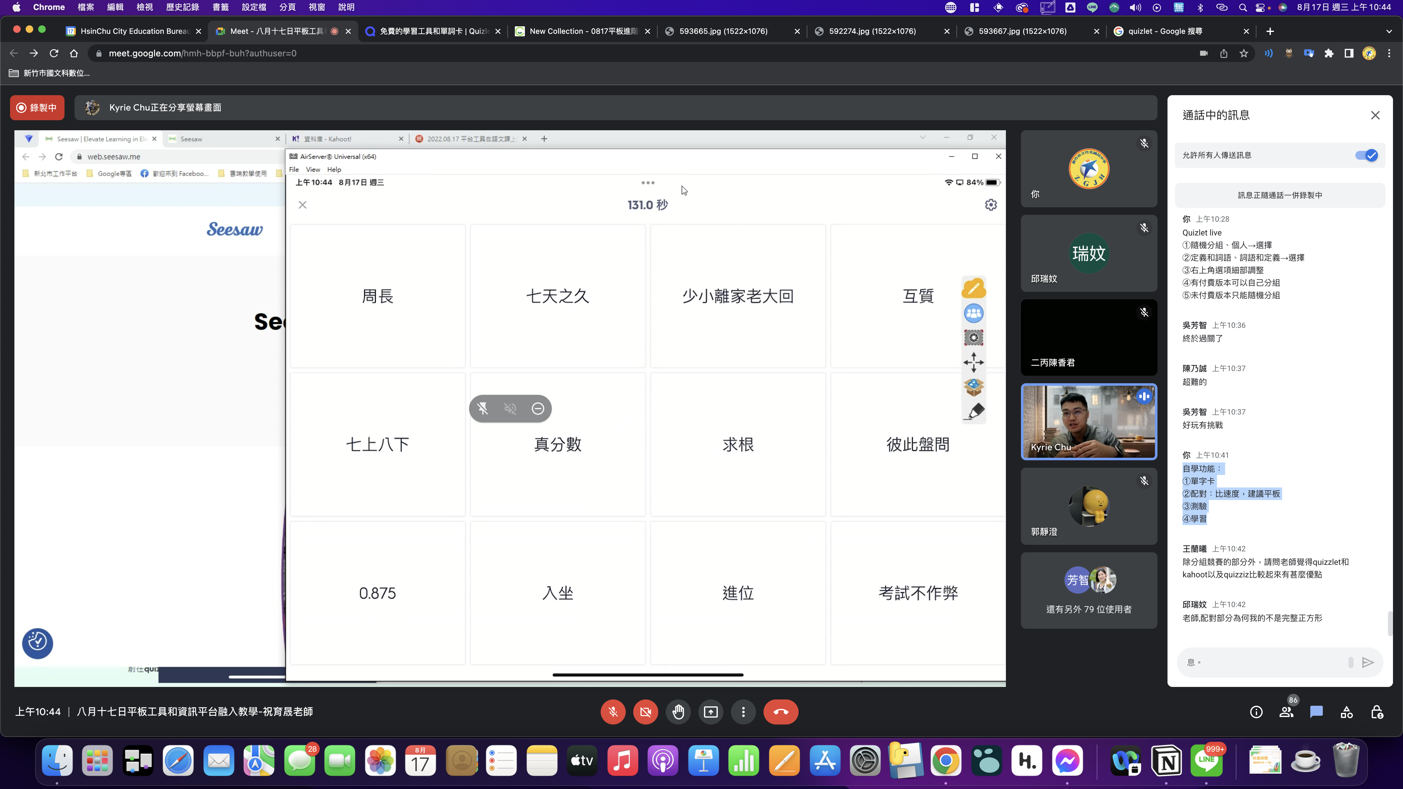 2022/8/17早上辦理平板進階研習,同時也跟新竹市國文科數位輔導團一起辦理。辦理的是線上研習,全市共八十多位老師參與。