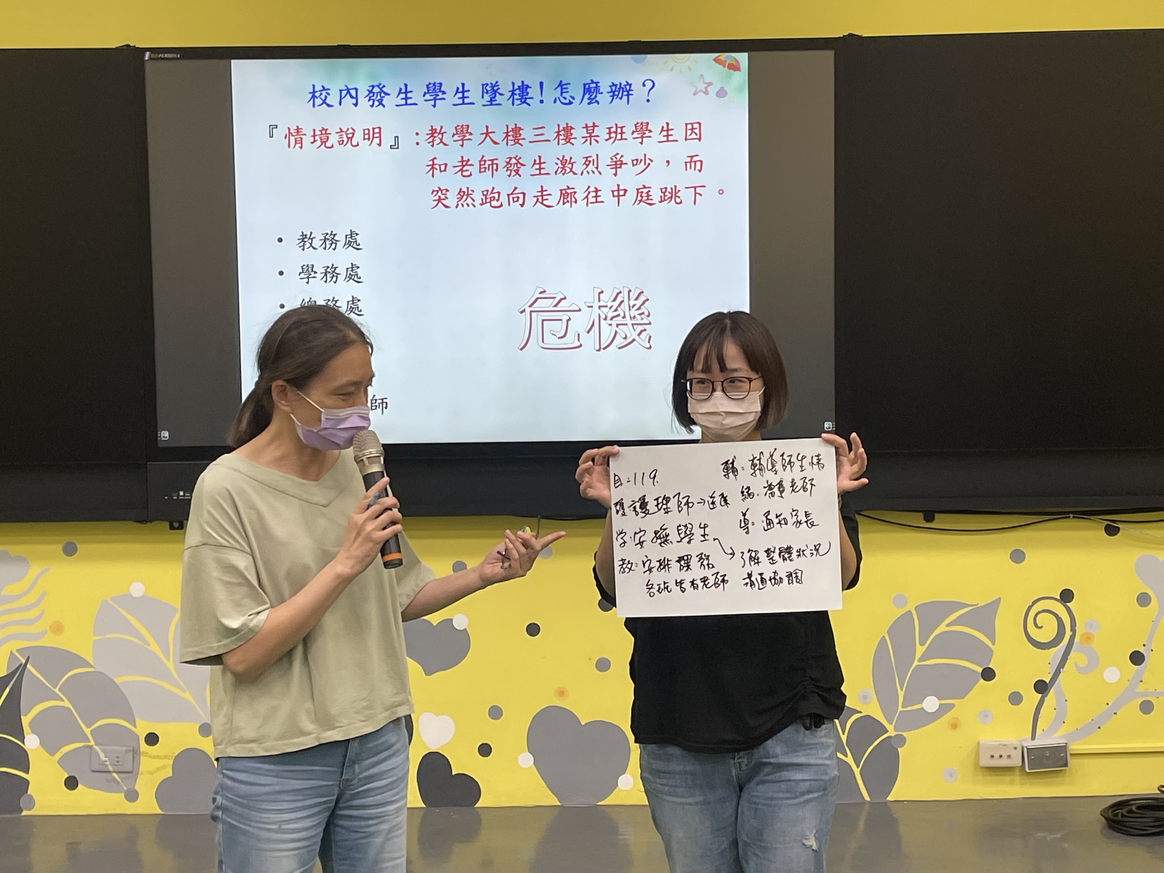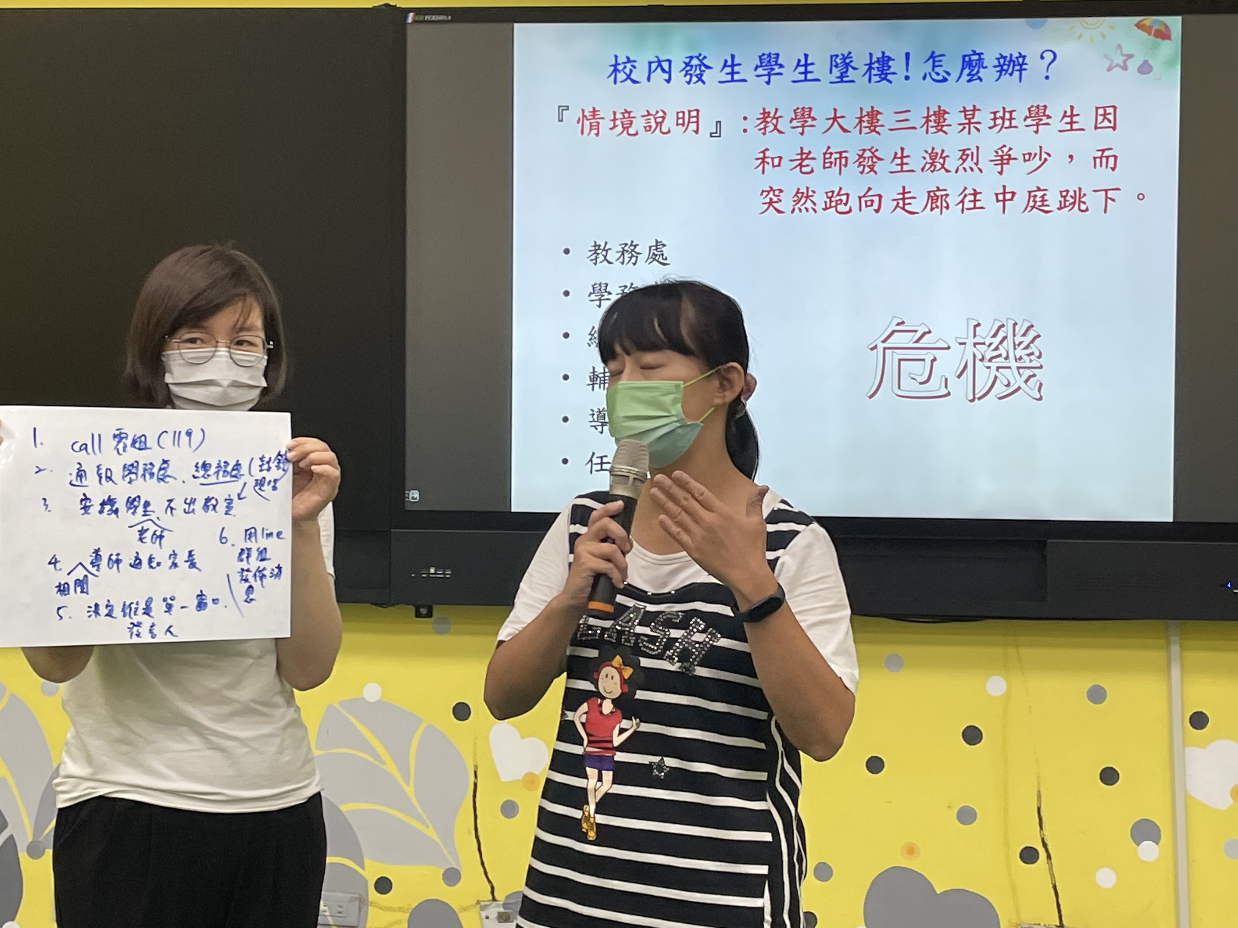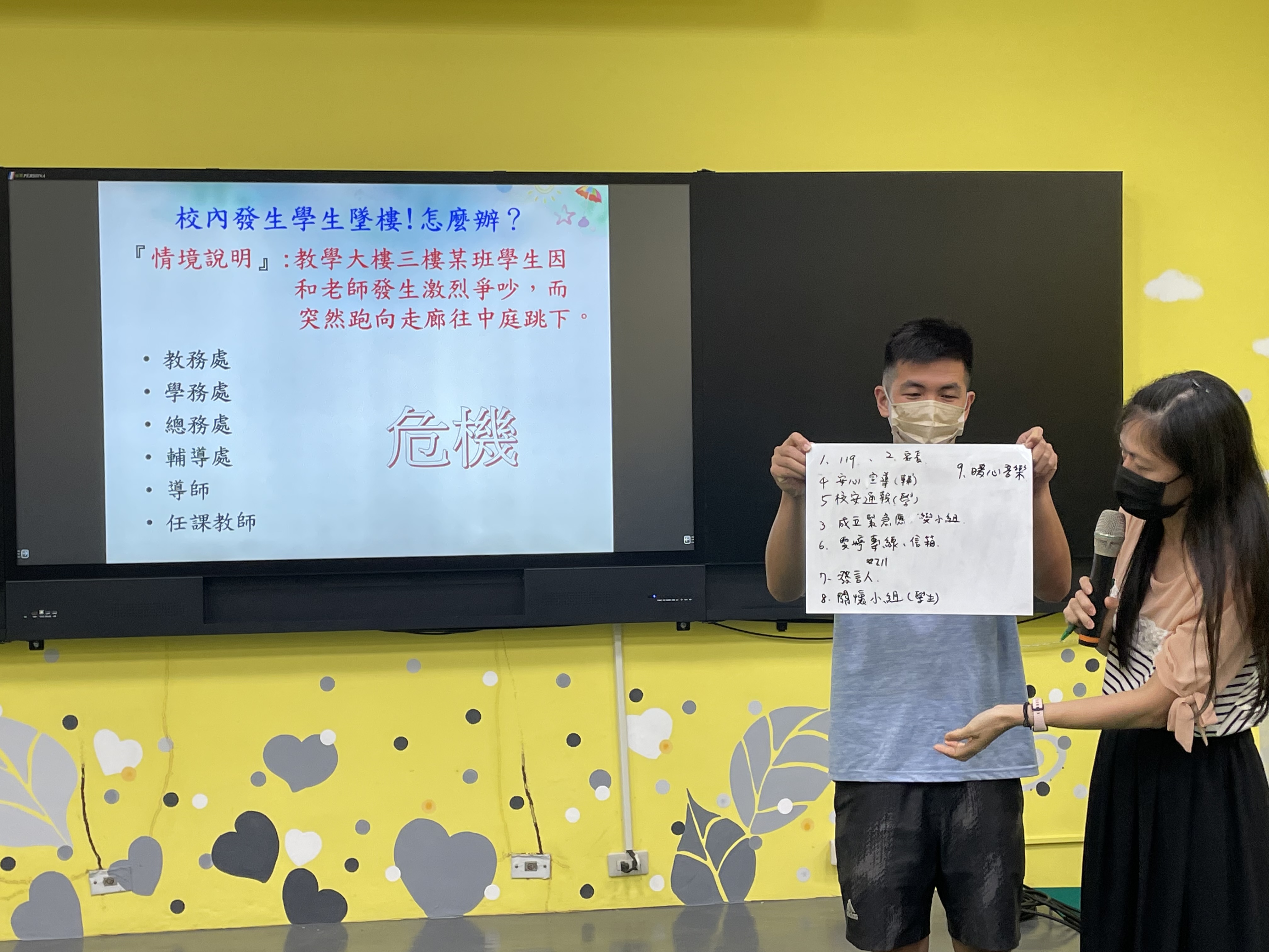 本校在教師備課日辦理生命教育研習,輔導主任陳威任透過「校園師生發生激烈爭吵後的墜樓事件,我們應如何做」的題目,讓老師分組討論,讓老師在思考若不幸遇到此狀況,大家應如何應變,老師們都非常積極的參與投入並釐清概念,收穫滿滿,是一場有學習的增能研習。