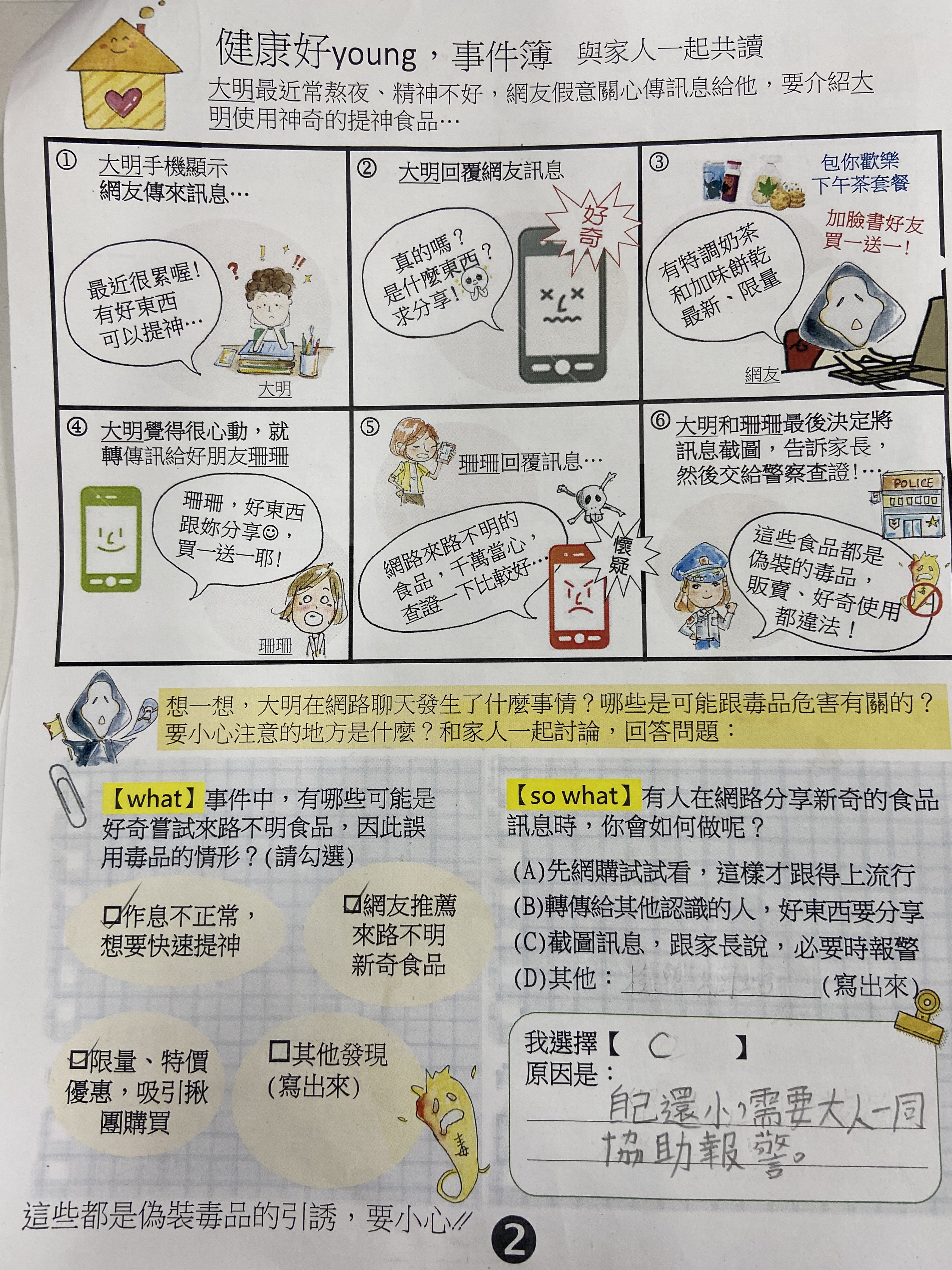 健康好young不毒特,多元化的反毒學習從影片、情境、測驗,面對誘惑的拒絕,毒品危害的可怕,拒絕毒品的人生樣貌~~都讓孩子們學習到面對毒害的自我警醒與覺察,學校家裡一同引領孩子知毒、識毒、拒毒~讓孩子擁有健康快樂的未來~