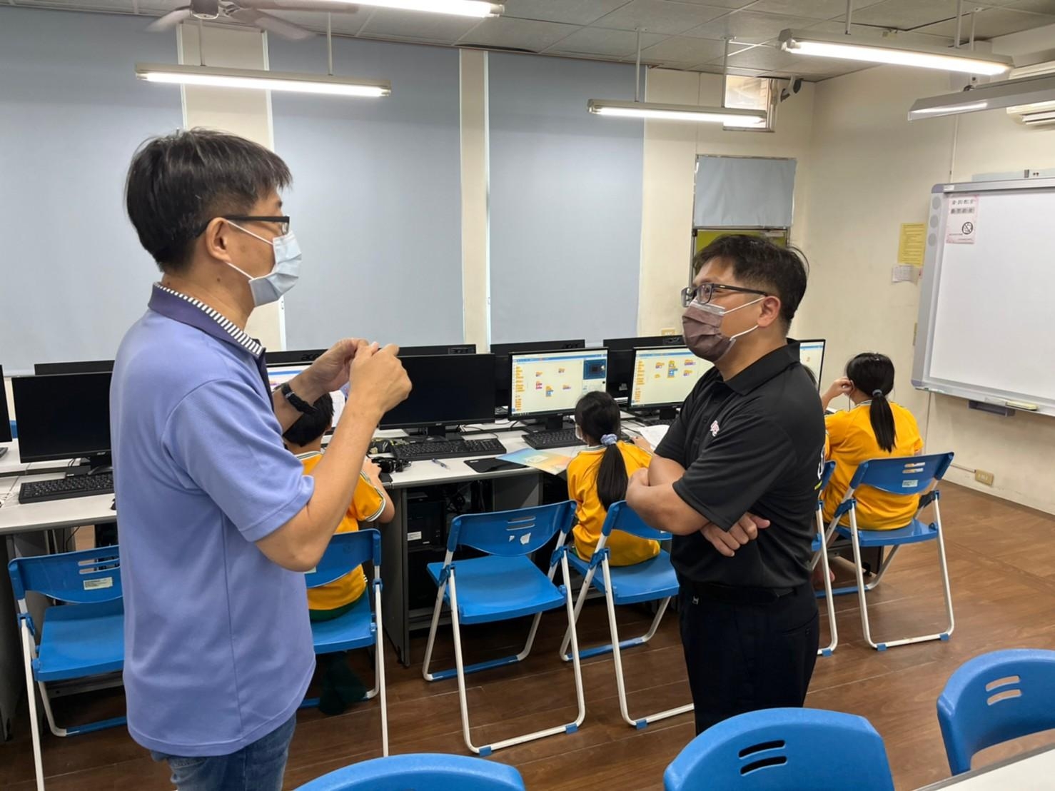 接觸資訊領域,這學期一樣是由蔡漢忠老授課,蔡老師教學活潑有趣深得喜愛,兆寅校長很關心孩子的學習狀況,一起到資訊教室了解孩子們的上課內容,希望每位孩子認真學習,每次上課都有滿滿的收穫。