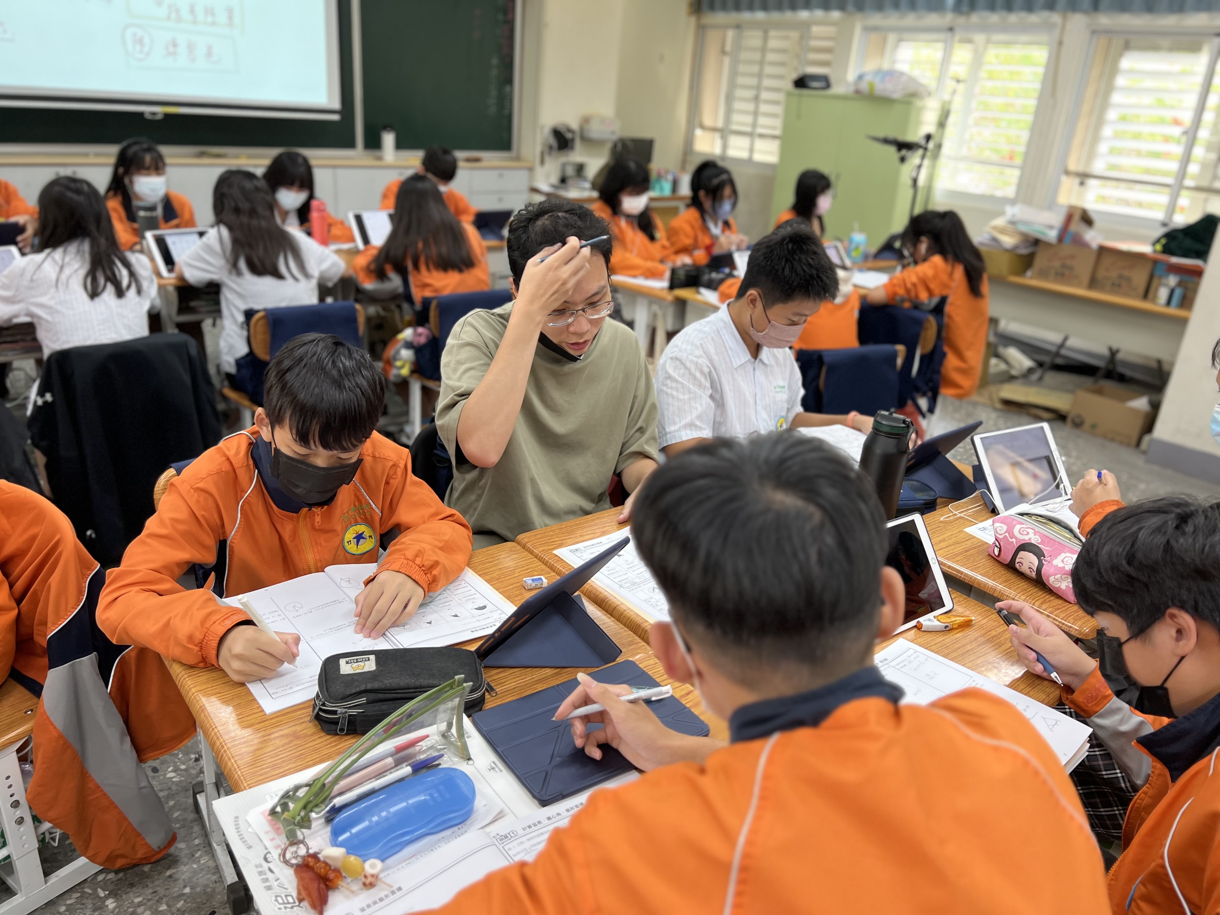 今天在九年五班數學科由張盛彥老師進入四學融入數學科的教學演示,透過各組自學,組內共學、組間互學,再由老師導學的四學模式,希望能幫助學生能快速進入學習之中。今天清華大學王子華教授也進課進行觀察,也給予建議。
