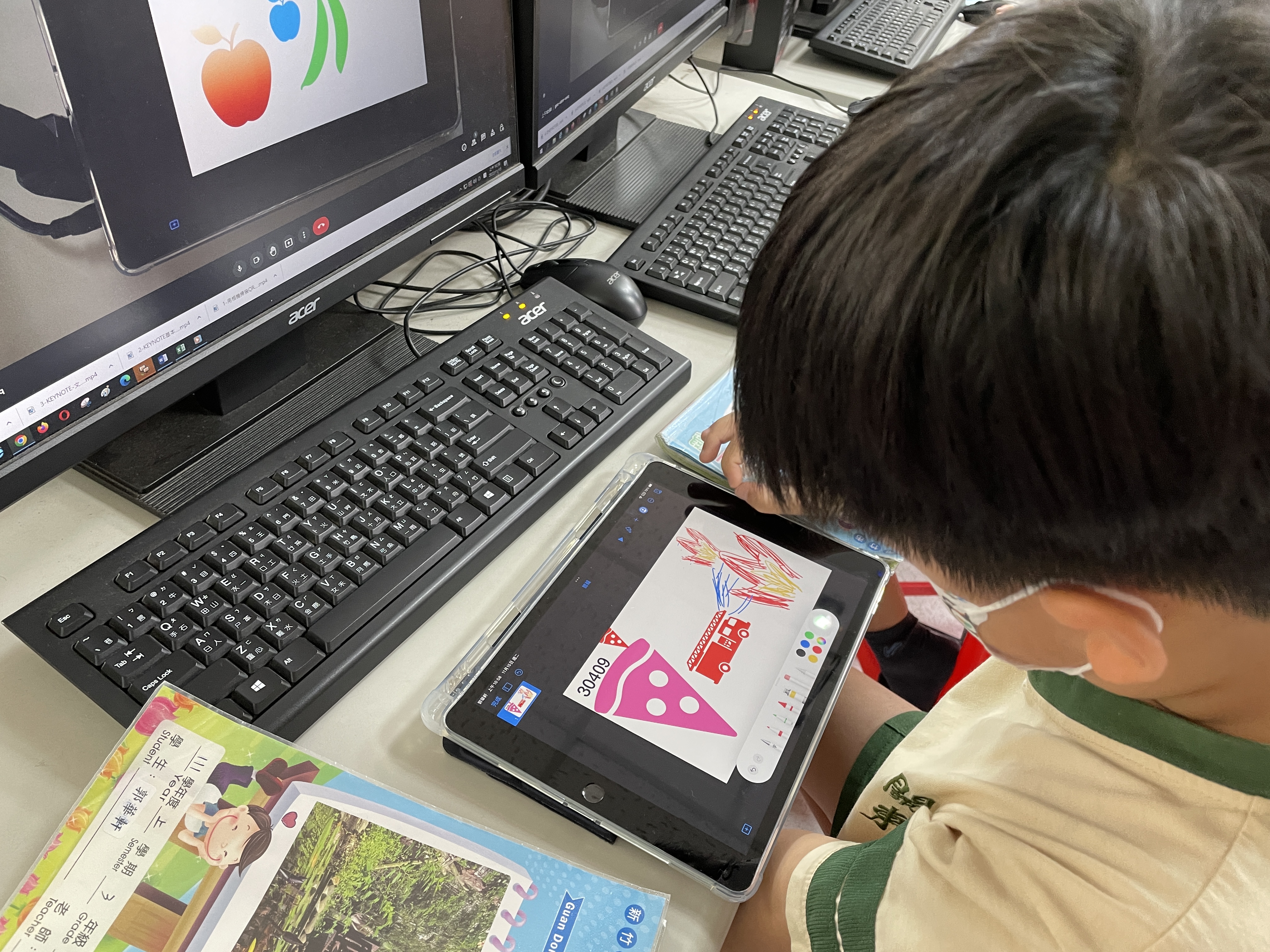本校推廣生生用平板,在任何領域科目融合iPad進行教學活動。學生面對新的學習工具非常興奮,可以透過自學、共學、互學,來滿足求知的好奇心。