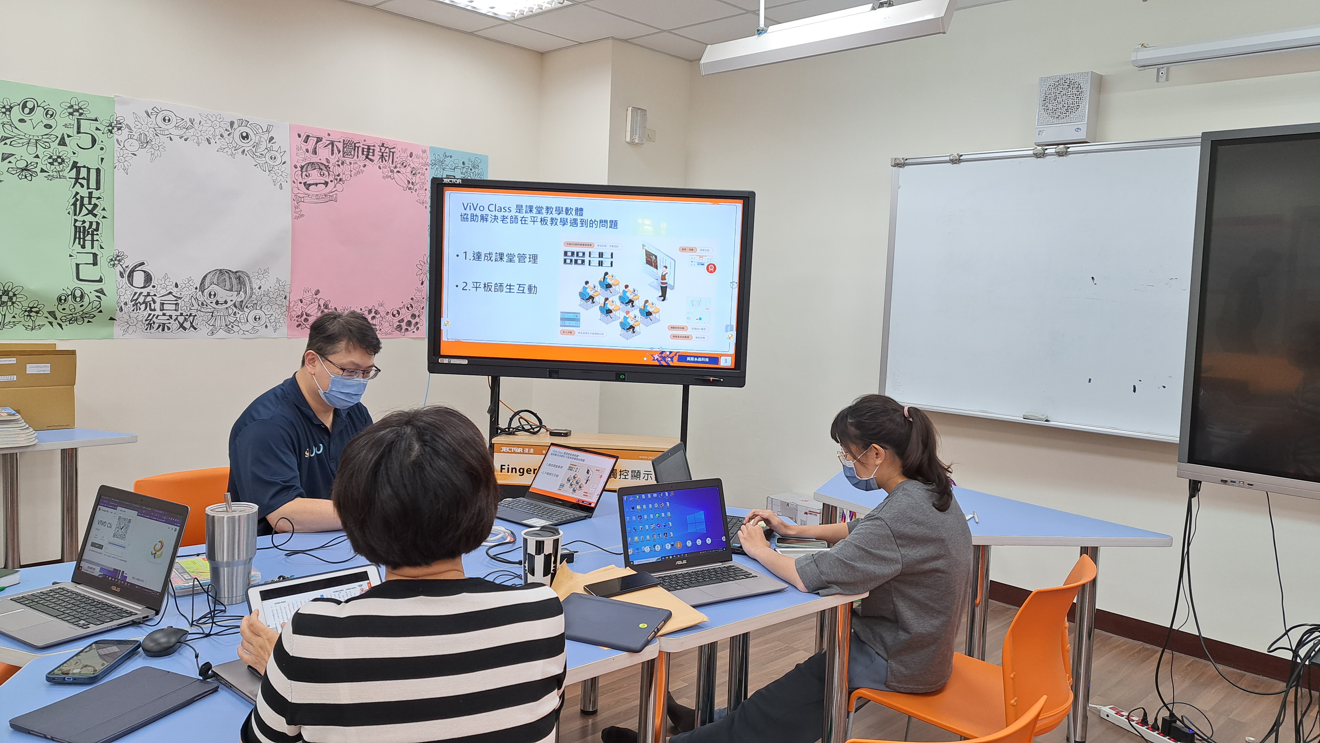 今天興展矽統科技的蔡政倫主任來到了竹光國中,和我們分享VIVO軟體在課堂上的運用。雖說在資訊系統發達的現代,功能大同小異的各種資訊平台、數位軟體如百花齊放,但VIVO確實有許多不錯的功能。除了即時搶答、加分等較常見的實用功能外,VIVO還有幾個很方便,也很特別的功能。一是可以重播學生的作答歷程,一是可以做前後測的比較。在研習過程中,老師們也針對教學現場會遇到的問題提出不少建議,今天的增能研習,我們都獲益良多。
