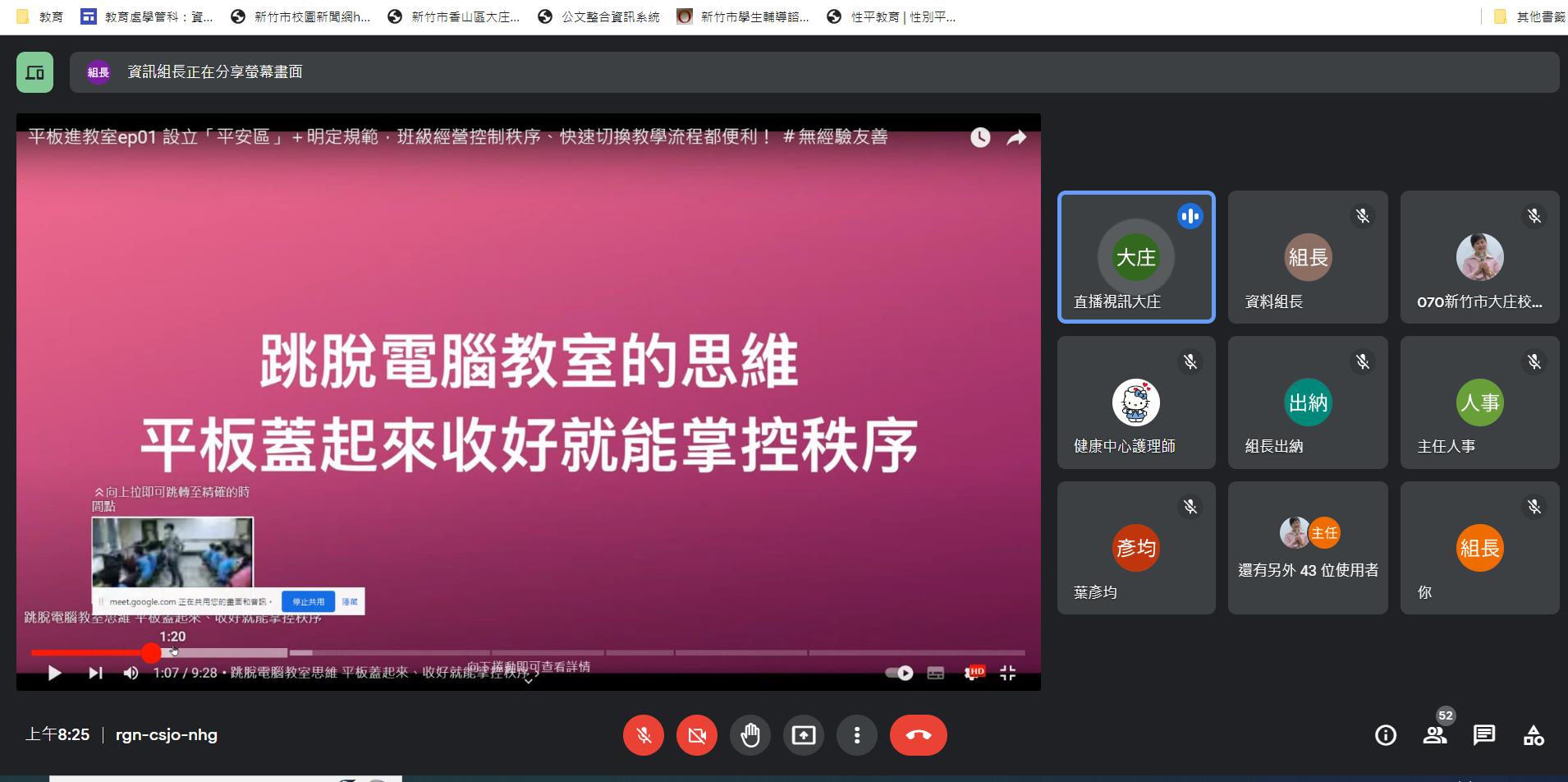今年為行政院數位學習精進計畫第一年,為了讓教師更快將平板導入班級教學,教務處於教師晨會分享平板入班教學注意事項,包含平板借用方式、心法、班級經營、課程實例......等,最後一起實作Kahoot遊戲式教學。期待平板的導入,打造不一樣教學風景。