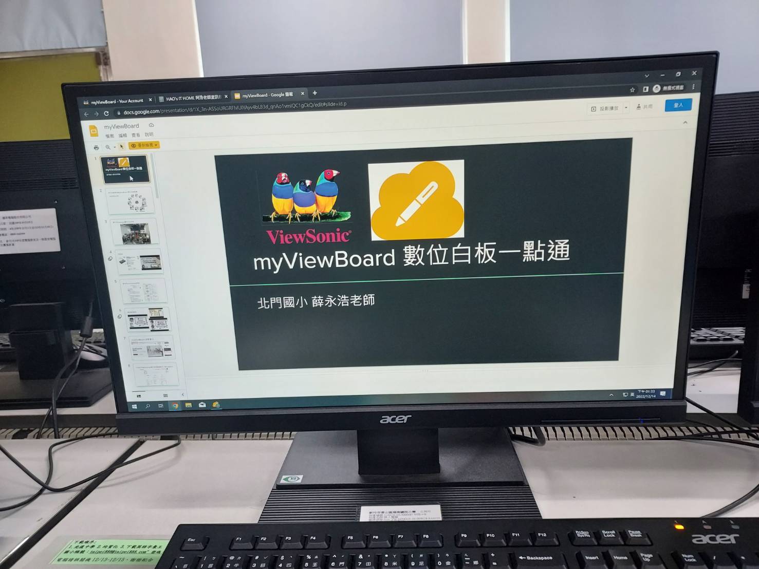 今天邀請了北門國小的薛詠浩老師到校,為本校老師分享數位學習推動增能研習My View Board,老師先讓大家認識My View Board的基本功能,並且練習操作,老師可以將My View Board運用在各科領域,包括作文也可以用更多元方式呈現,相信對於學生的學習效能可以大大提升喔!