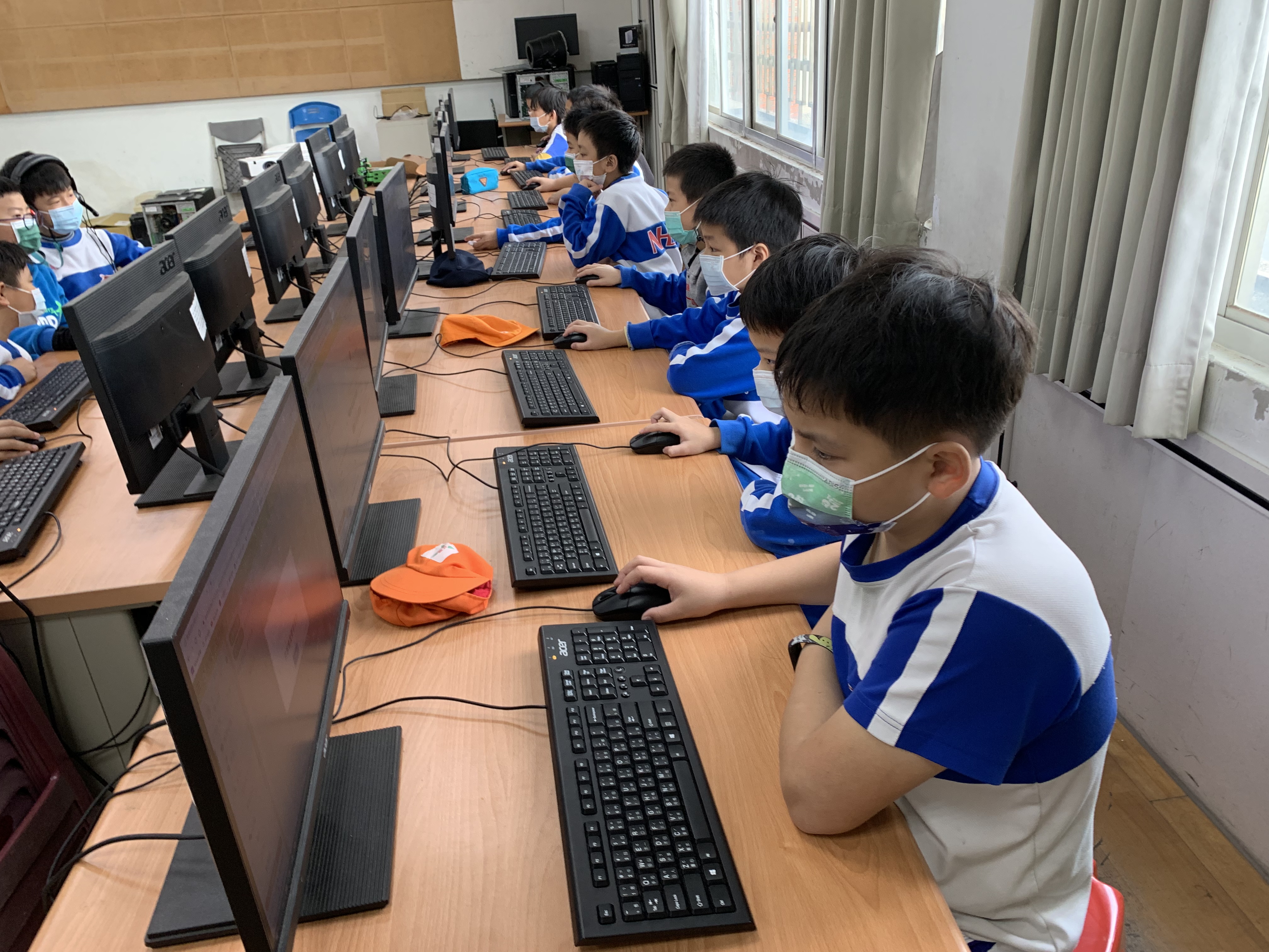 資訊教育計畫現階段先讓學生使用電腦登入熟悉操作介面,等學生熟悉平台操作方法後,可使用iPad在教室也能進行練習。