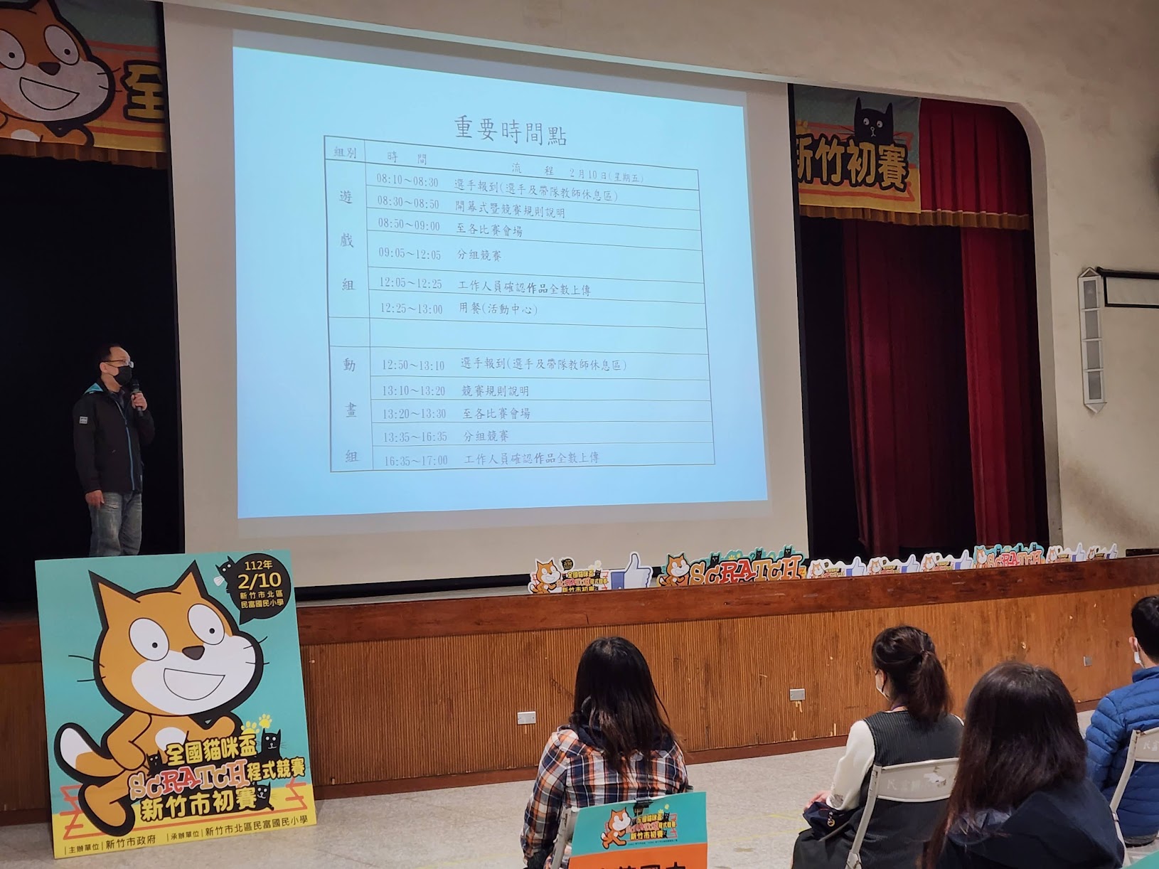 112年度貓咪盃SCRATCH程式競賽-新竹市初賽2/10在民富國小舉行。貓咪盃SCRATCH程式競賽上午為遊戲組、下午為動畫組,由資訊組長林金山老師帶隊指導,佳曄校長也到現場為小陽光加油鼓勵。在高年級的資訊課程裡,孩子們就有學習到SCRATCH程式語言設計,它是一套免費且寓教於樂的程式設計軟體,SCRATCH將一般專業的程式設計指令轉化為簡單的積木方塊,只要將這些指令積木拖曳組合,就能簡單的完成程式設計。因此可以使用SCRATCH來創作互動式故事、遊戲、動畫和音樂等作品,提昇孩子邏輯思考及創作能力。