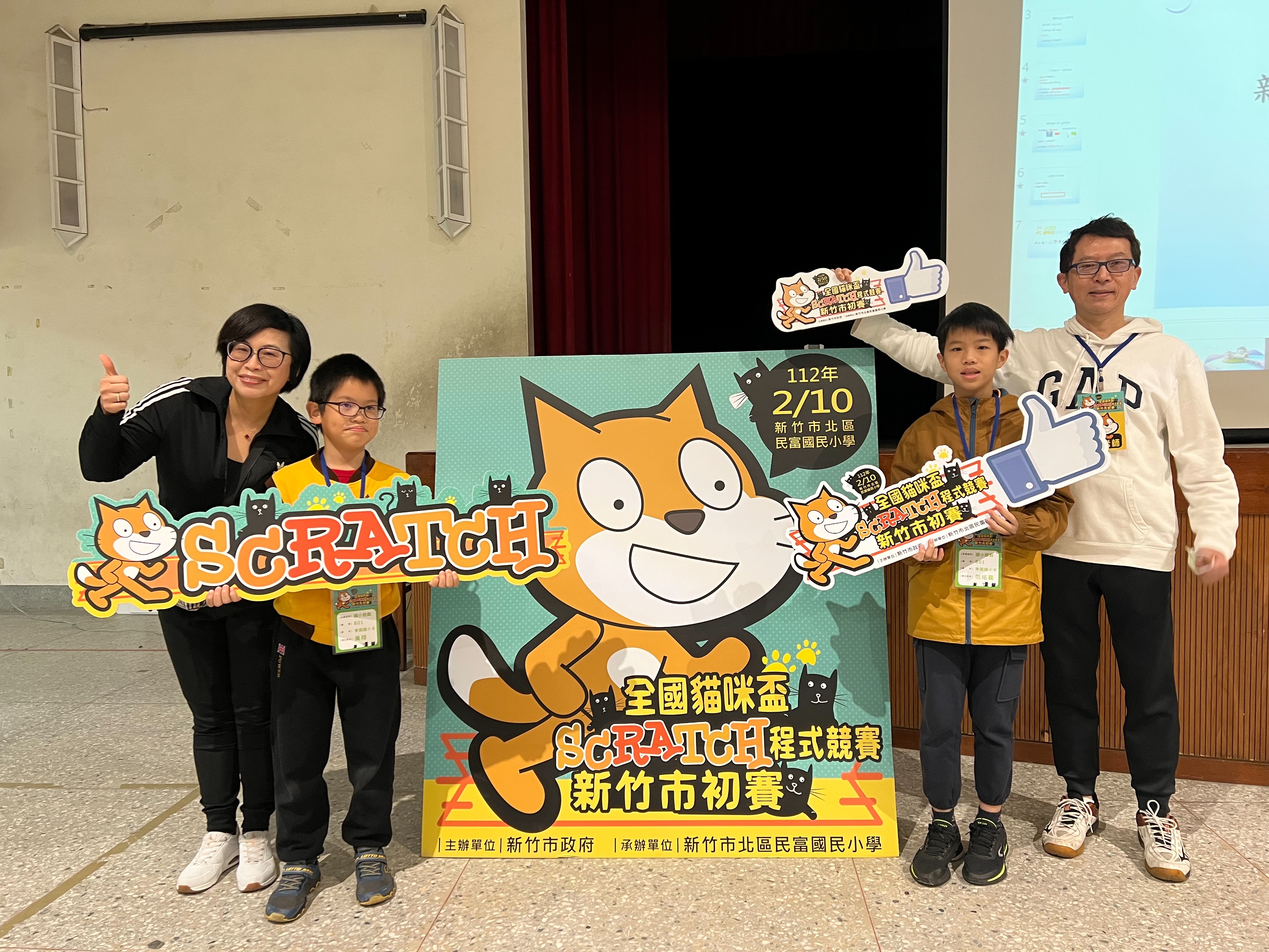 為培養學生資訊軟體的知能,提升本校程式教學風氣,提升學生程式設計能力,今年由資訊教師帶領學生參加新竹市112年貓咪杯Scratch程式設計競賽,東園國小報名「國小遊戲組」、「國小動畫組」,由毛家驥老師及陳慧珍老師指導學生陳O宏603、廖O茗502、范O嘉507、415萬O、柯O茗611、李O毅611參賽,藉由學習Scratch視覺化與積木組合式的程式語言,提升學生的邏輯思考能力,激發對資訊學習的興趣。感謝東園國小曾玉蓮校長、東園國小家長會長及副會長前往會場給比賽選手加油打氣!