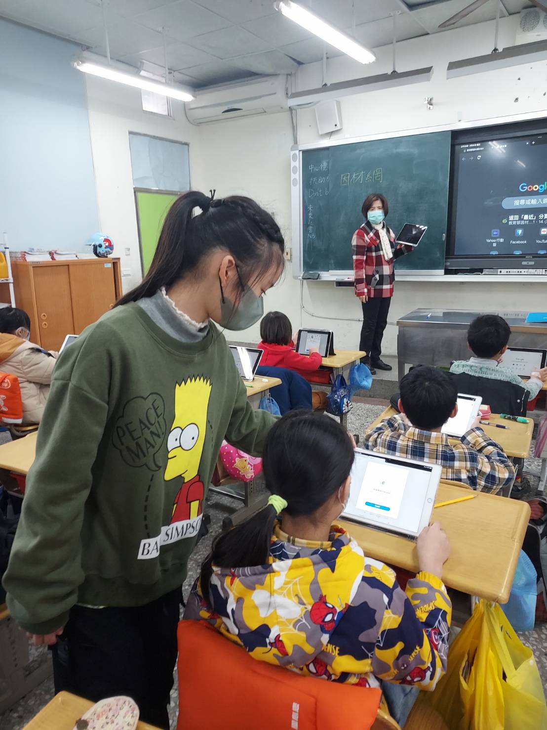 今日琦崴主任帶著五年級的大哥哥和大姊姊到三忠協助班上同學協助如何使用因材網,琦崴主任的說明很詳細,一個步驟接著一個步驟讓孩子進入到因材網的網站,三忠的每位孩子都很努力學習並且在大哥哥和大姊姊的協助下,大家成功地完成指派任務(數學分數),有了因材網的助益在學習上的的成效會大大的提升。