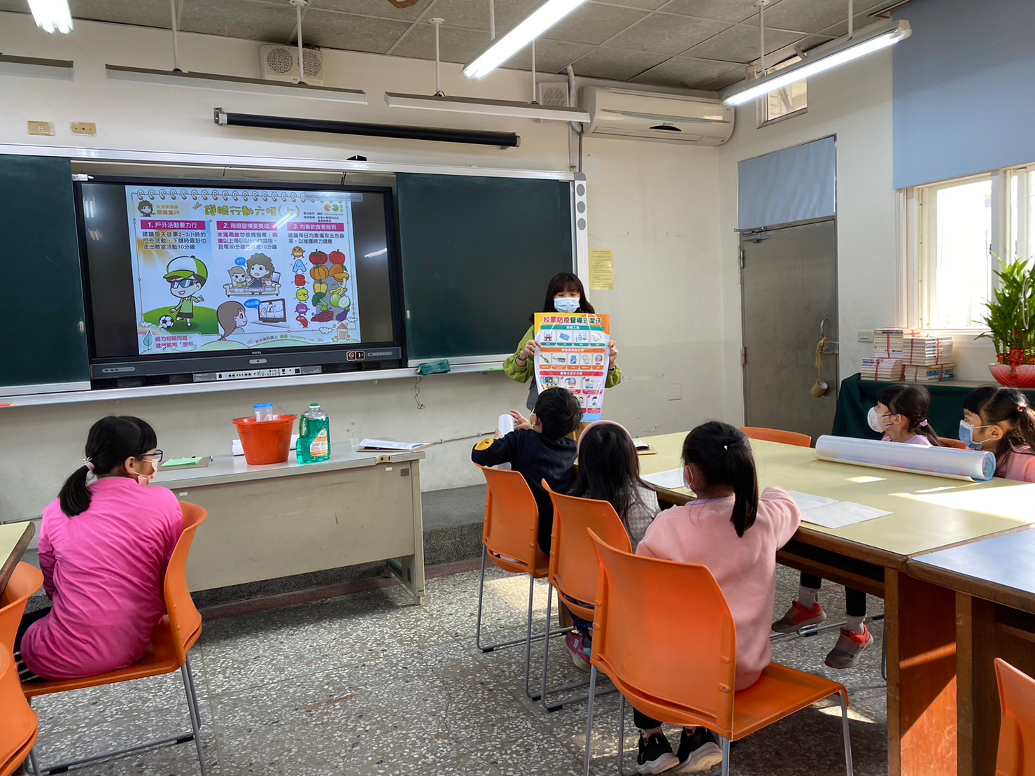護理師將各推動及執行工作要點逐一說明,好讓孩子們能將正確的健康知能深植於心裡,隨即展現於生活表現並能共同督促同學,以利達到全校均健的健康校園喔!