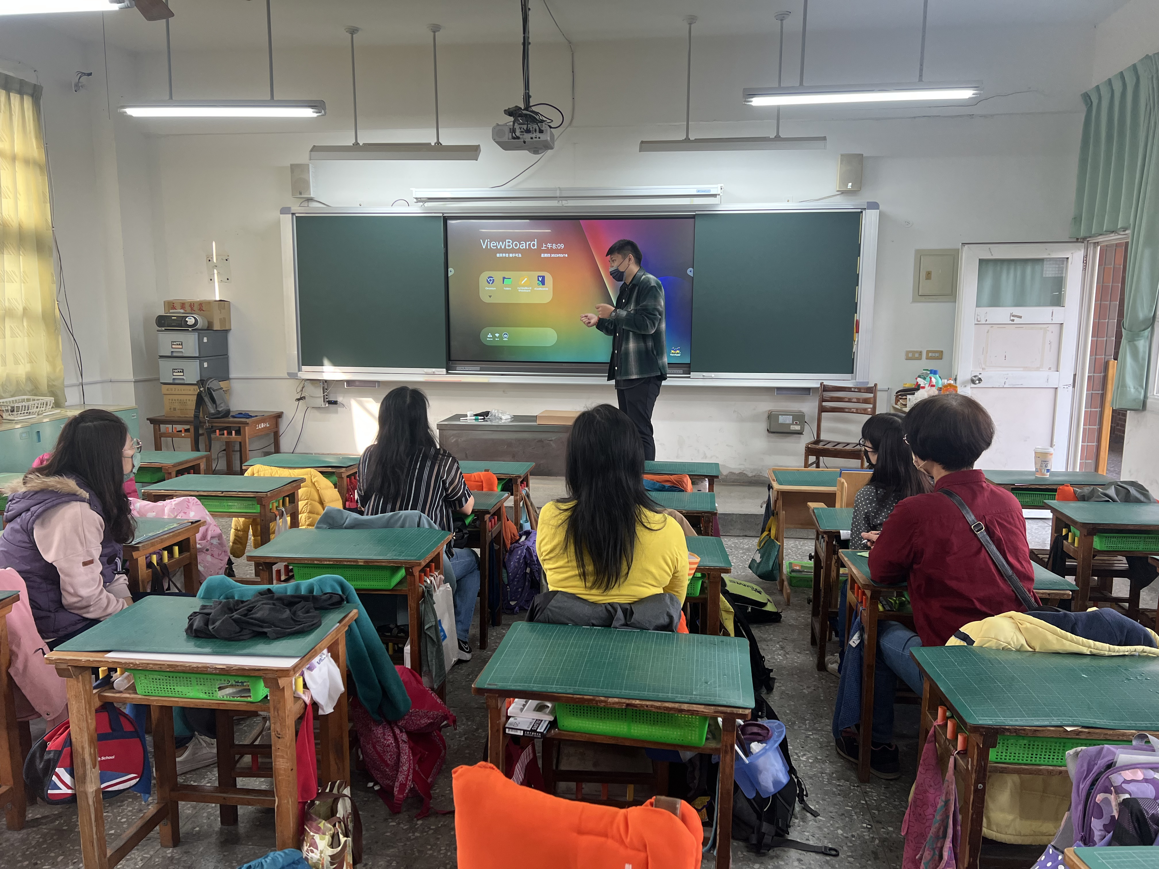 昨日安裝了觸控式螢幕,今天一早這幾位班級導師、科任教師、資訊組以及教務主任請工程師進行觸屏的操作說明,透過工程師的講解,大家很快速地知道觸屏的使用方法以及非常多的互動式功能,40分鐘的課程大家無比專注,了解了基本功能後,各班今天的課程非常的順暢,學生們都無比開心,老師表示學生非常專注的學習,並期待透過大屏上去做心得分享,未來也會使用生生用平板來搭配,學校端也會辦理觸屏的進階研習,來讓大家學習精進,雖然老師是傳道授業解惑者,但三民的教師也是不斷的學習精進者,數位時代,智慧教室,多元的教學方式,讓學生快樂且充實的學習,是我們的目標。