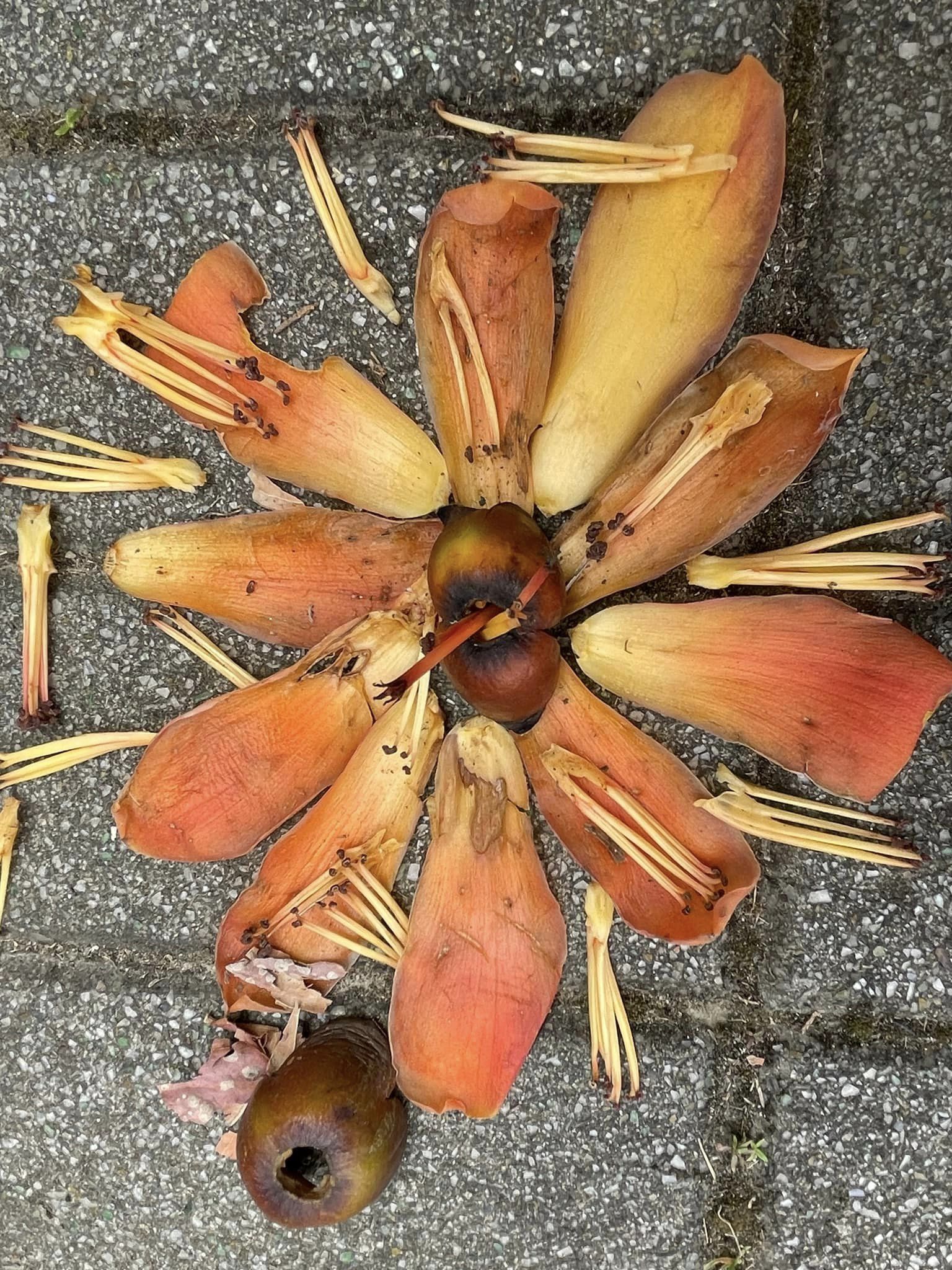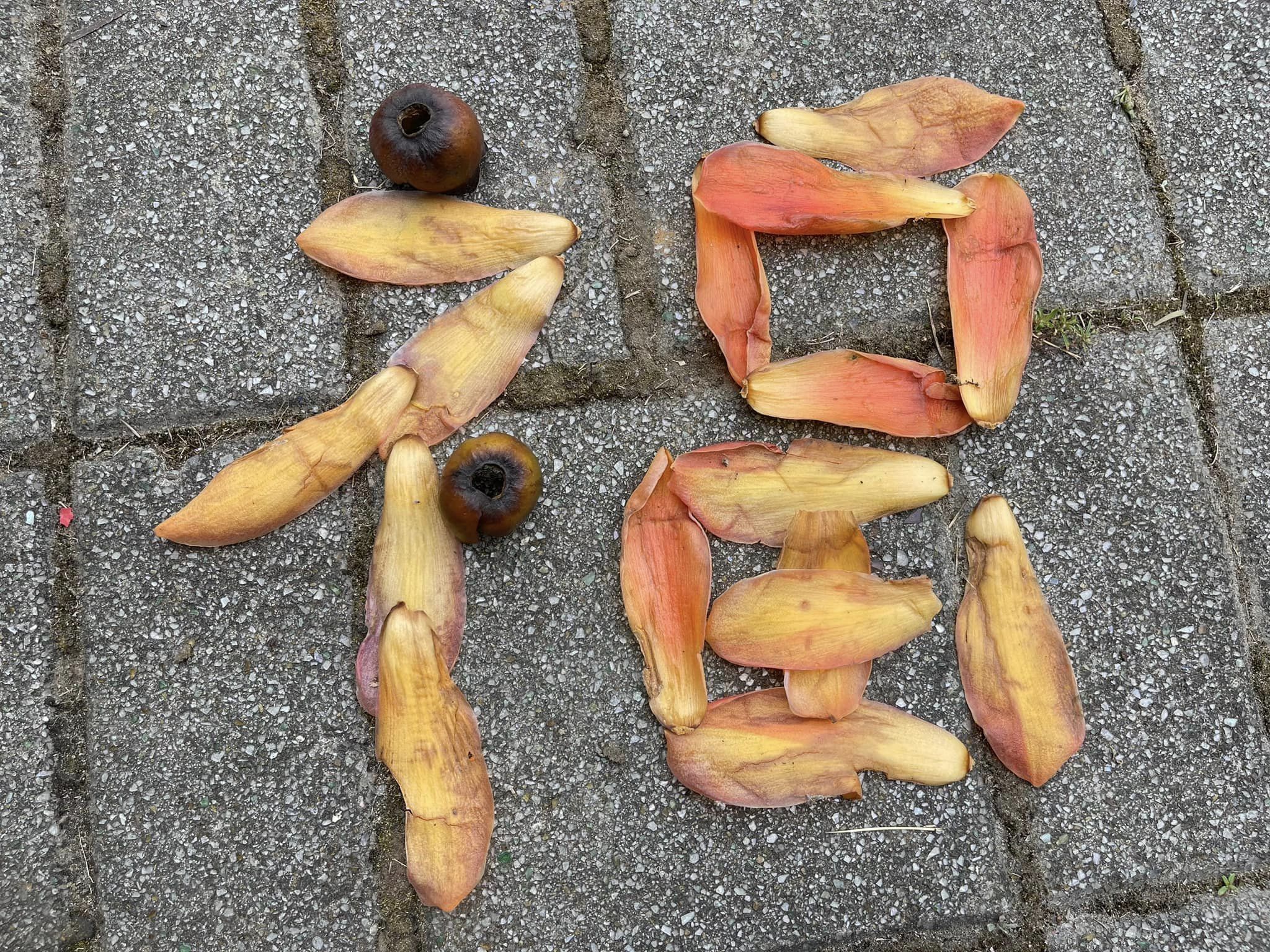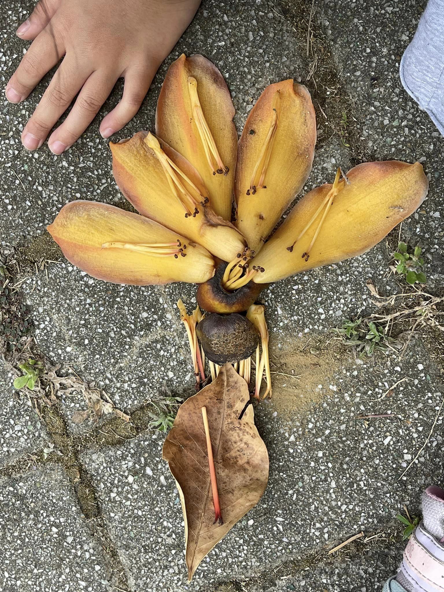 木棉花在孩子的手上,不是分辨雄蕊雌蕊,也不是數一數一朵花有多少花瓣,而是與他們所聽所學連結的蟲蟲故事、自己的名字和學過的吉祥字。
