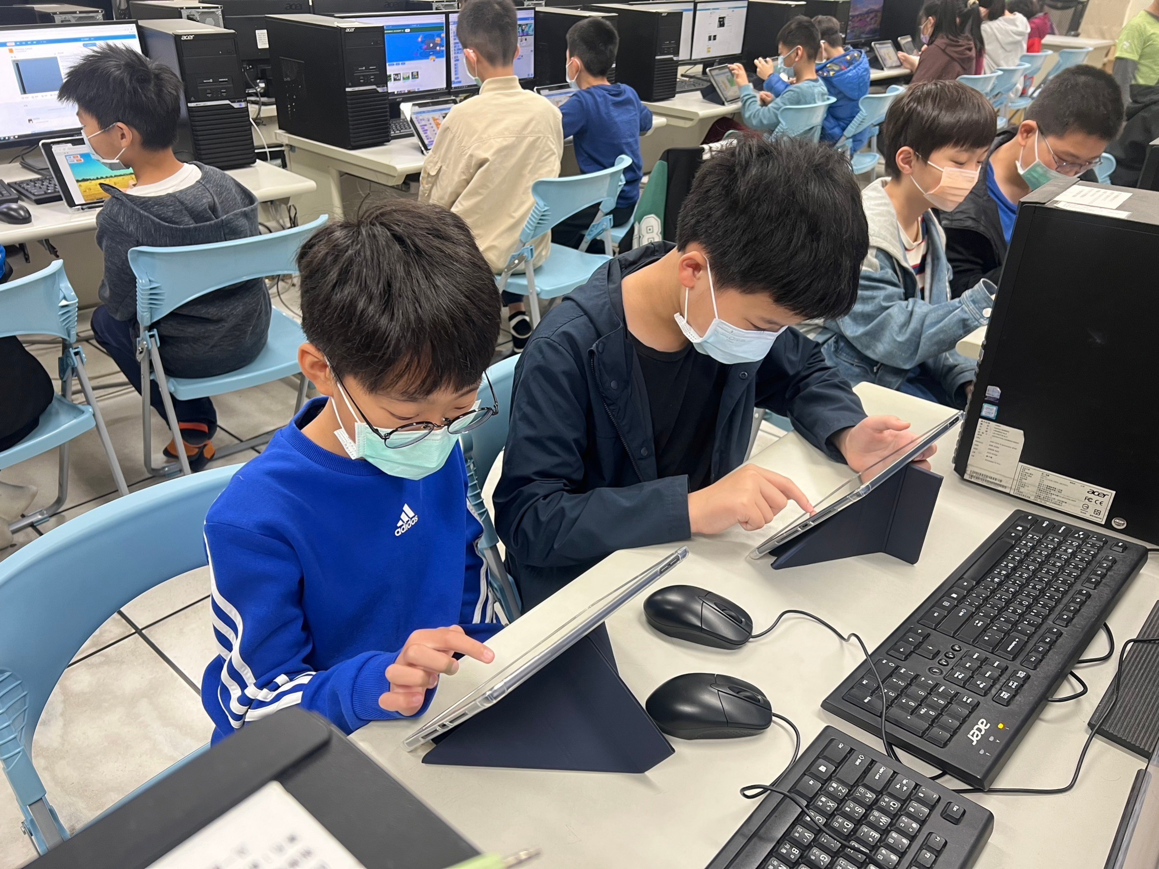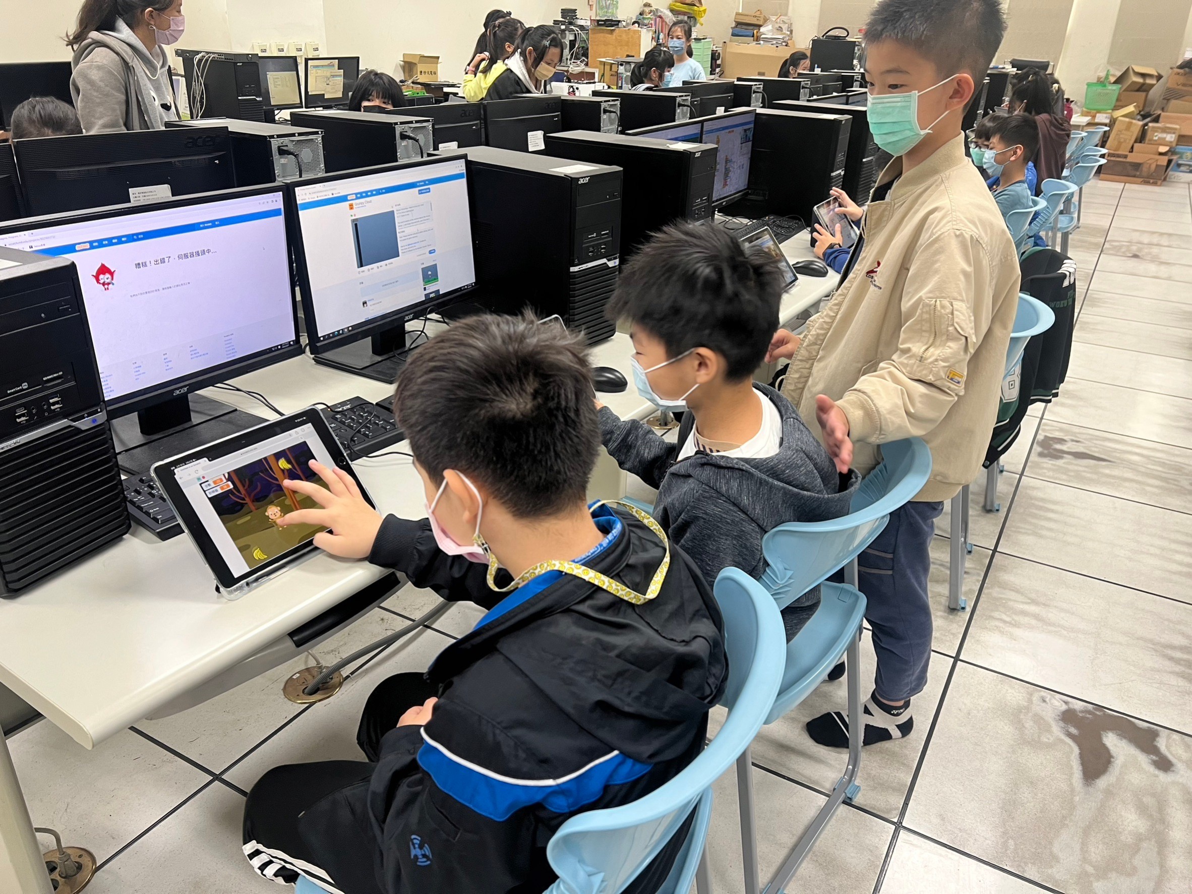 繼上一堂課作業分享後,今天我們的課程是「玩別人的遊戲」,並找出每一台平板得分最高的人。大家輪流排隊去玩同學設計的遊戲,覺得好有趣,而且要挑戰,誰可以玩得最高分,所以大家超專注的玩,最高分的小朋友可以加分唷!!今天大家在程式語言的遊戲上,玩得很滿足。