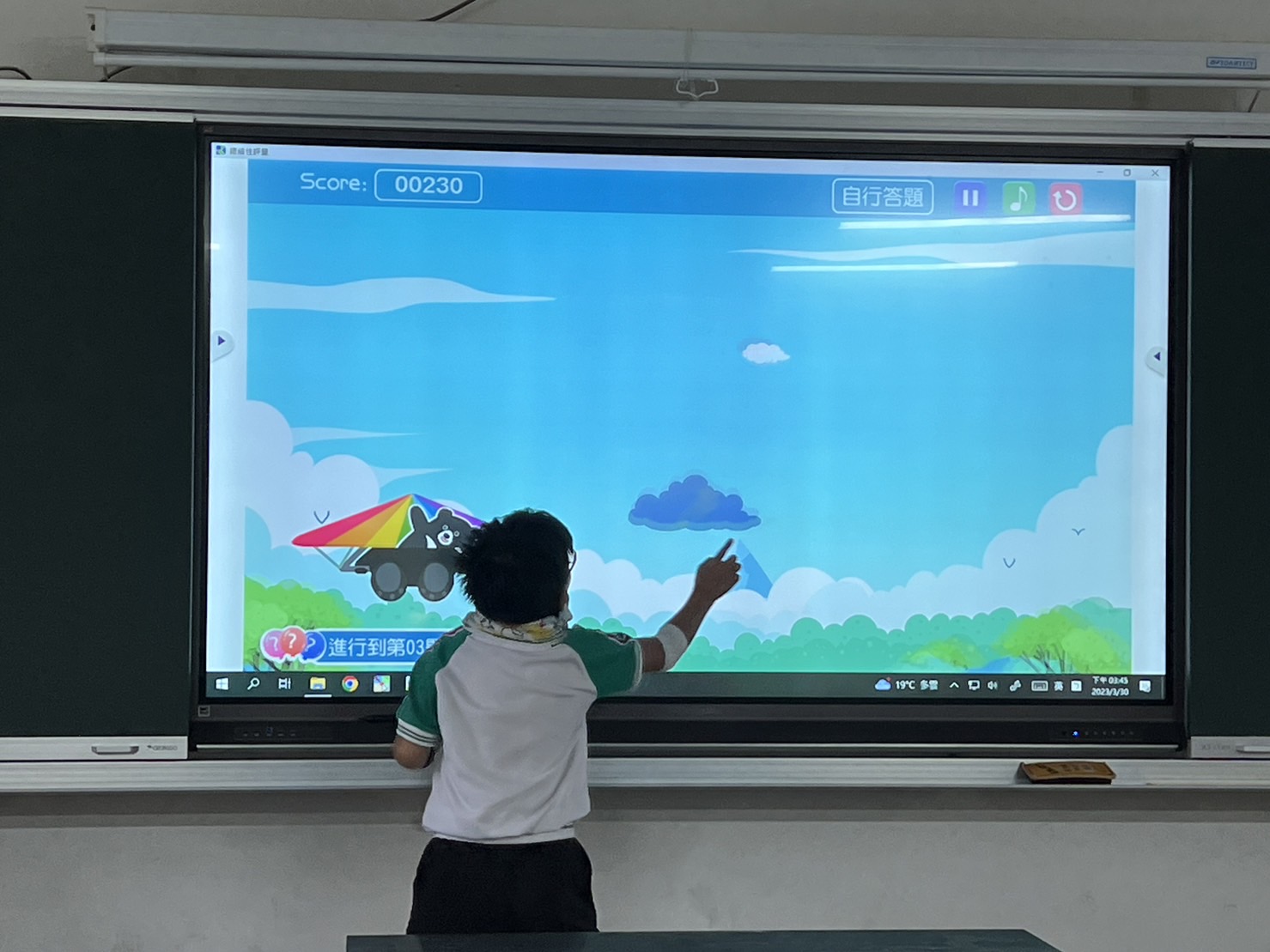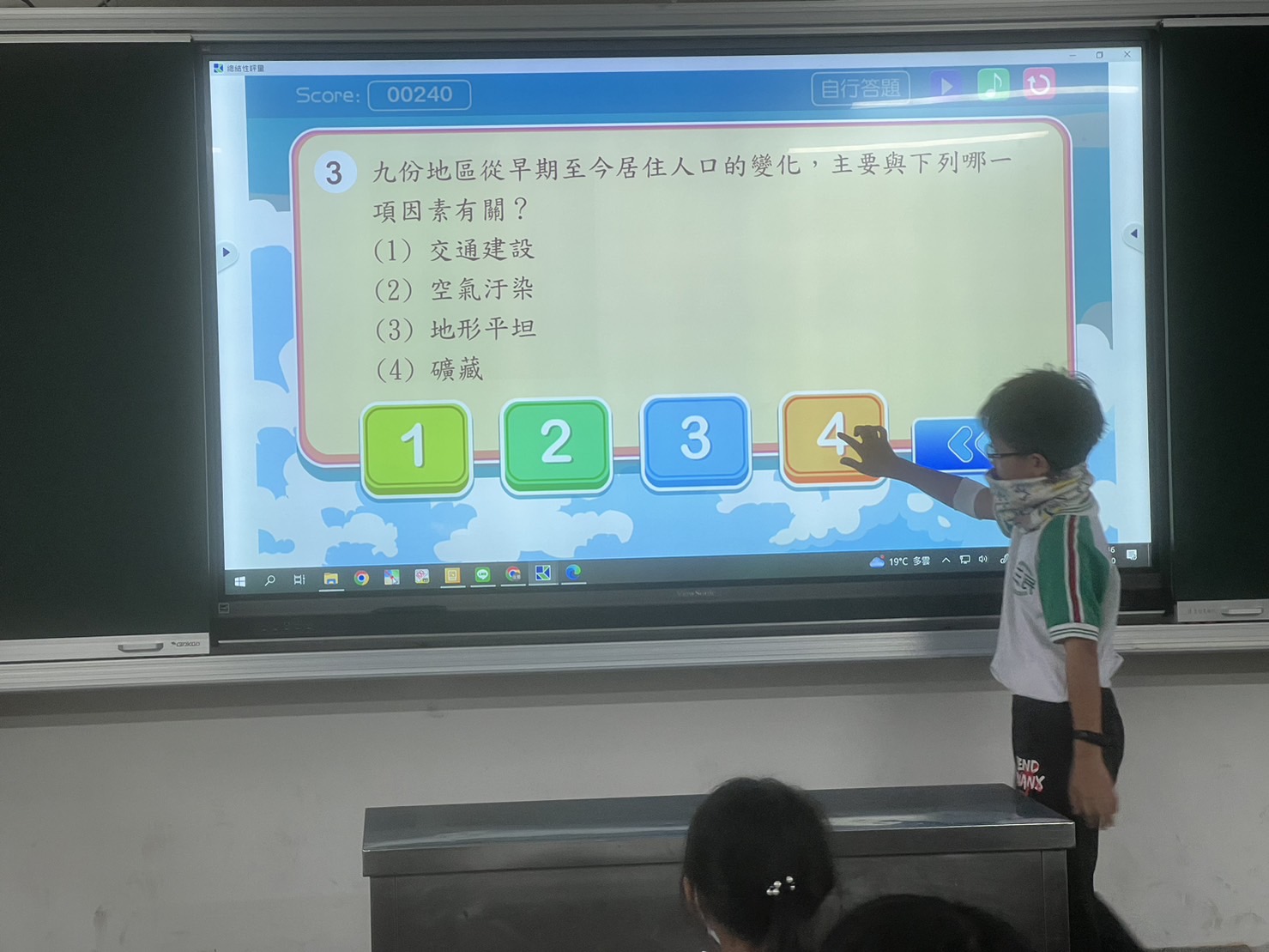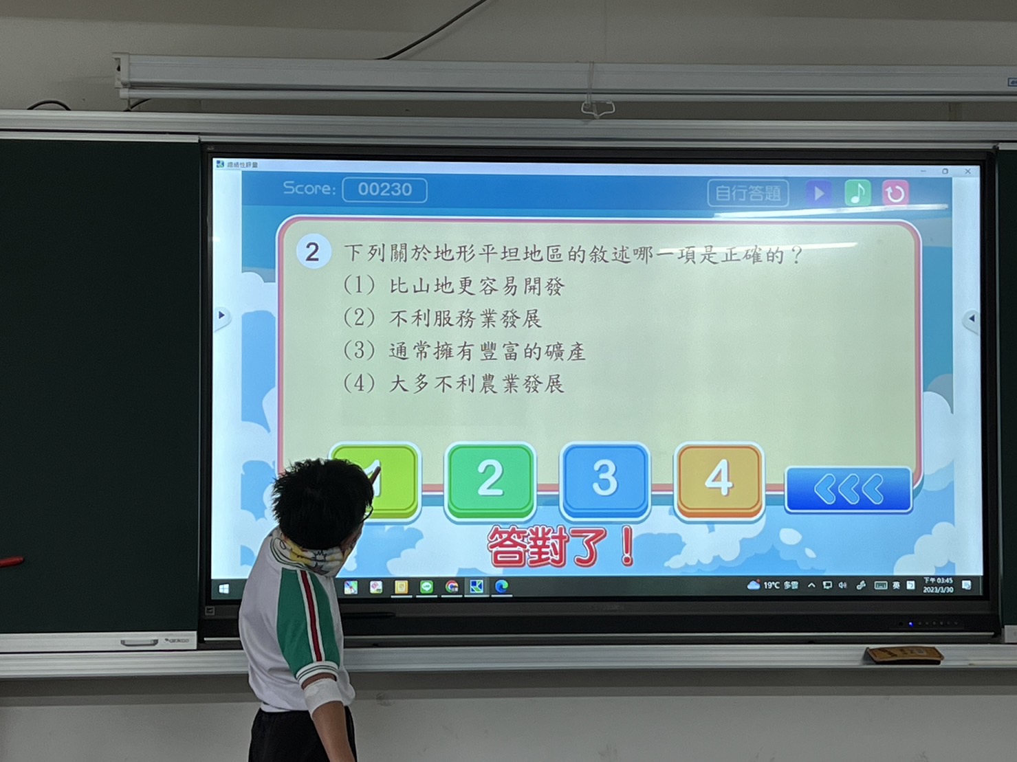 月考前,社會課後,複習的工作開啟。新主角大屏進駐本班來幫忙,跳脫以前的傳統模式,這次主角出擊,搭配電子書,全班一起進行隨堂測驗,電子書裡的遊戲活潑有趣卻也能恰到好處的複習到該有的觀念,終於可以讓學生親自操作,歡欣鼓舞阿!!加上螢幕螢幕大,大家可以一起讀題解題,不管事趣味性或是功能性,都很棒!