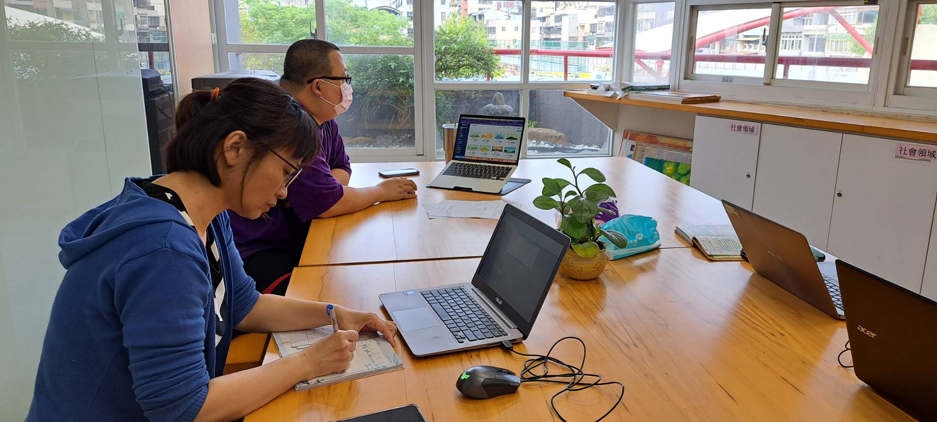 今天數位輔導團討論了平板融入教學的四十節課KPI紀錄,決定以校園新聞當作紀錄平台,並且實際練習操作了幾款不同的平台及App,成員們彼此也交流了一下實際課堂操作時遇到的問題及心得。除此之外,也安排了暑假期間外聘講師們預定講課的時間。