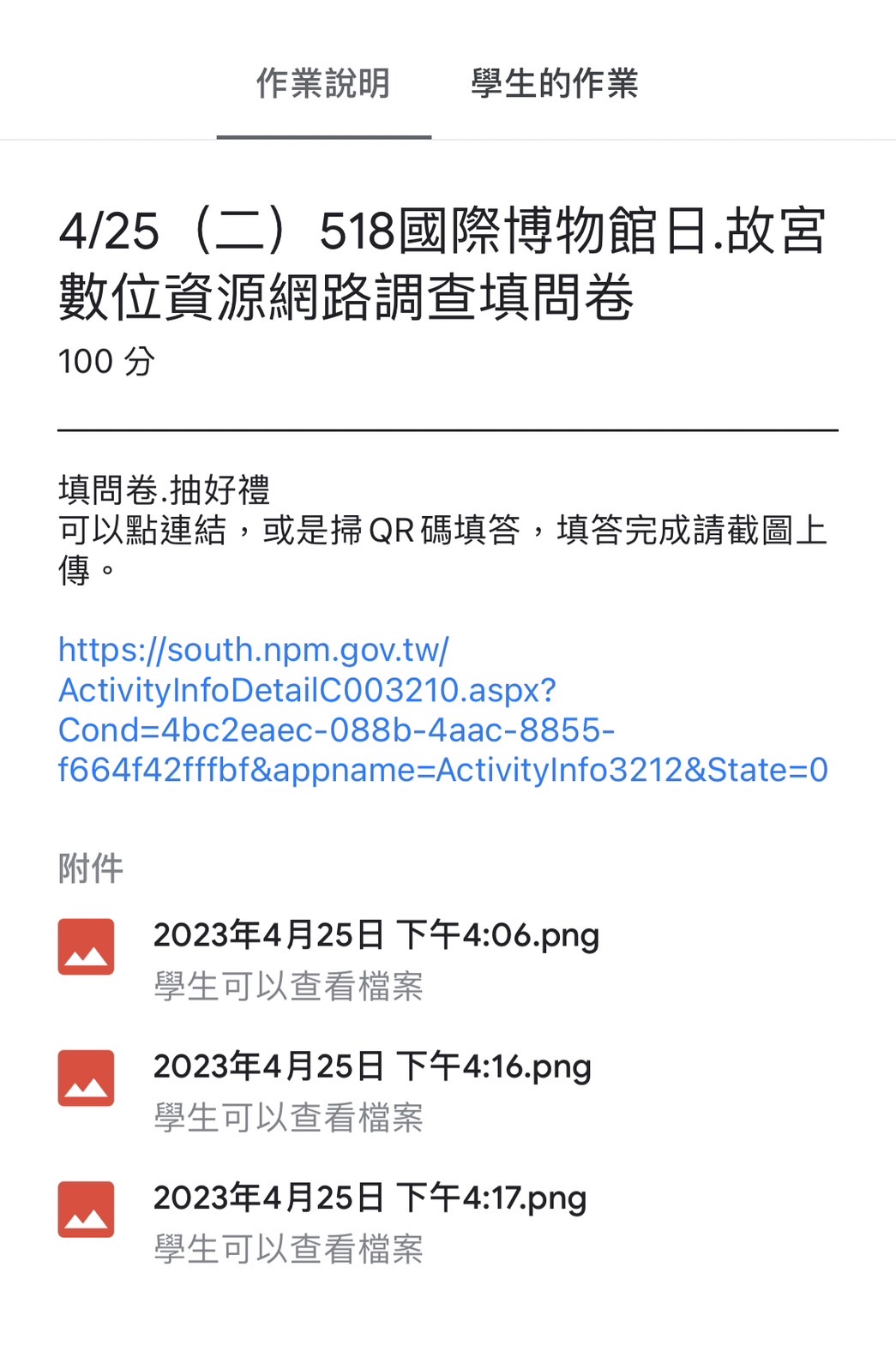 609響應518國際博物館日活動,全班在綜合活動課時,使用iPad來填答-
