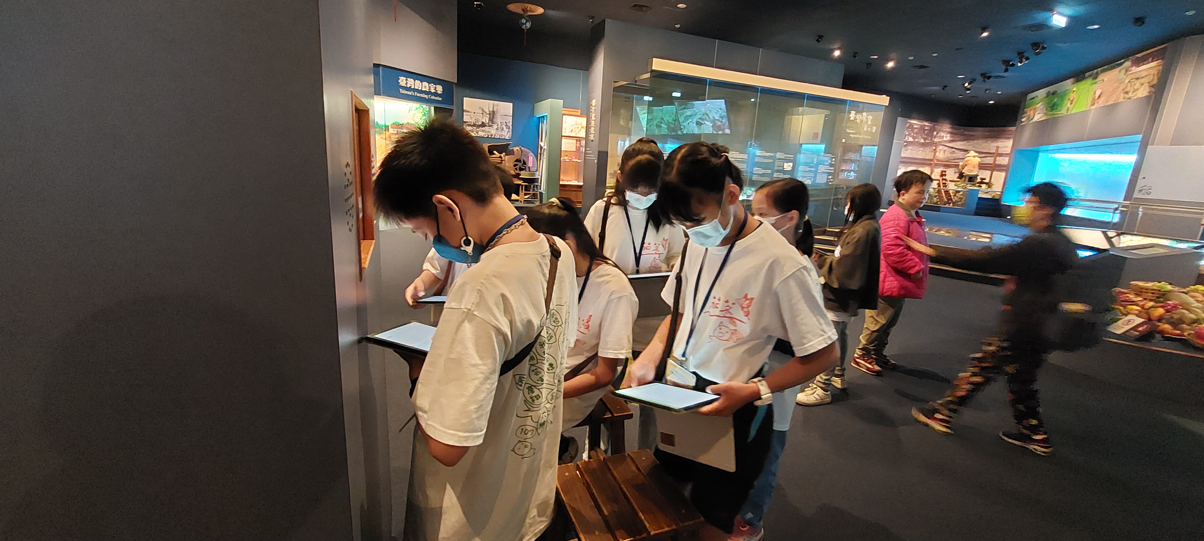 這個以人文社會領域為主的行動探索學習,串聯了科博館與人文社會相關展區,師生穿梭在「農業生態」--認識古代中國人使用的農業器具與生活型態、認識水圳、認識農業與人類生活的關係,與「中國人的心靈生活」--認識古代中國人使用的器具與生活型態、了解中國宗教習俗與人類生活的關係,以及「台灣南島語族」--了解台灣原住民族的房舍、器物的雕刻圖紋、聚落景觀的特點進行體驗學習。