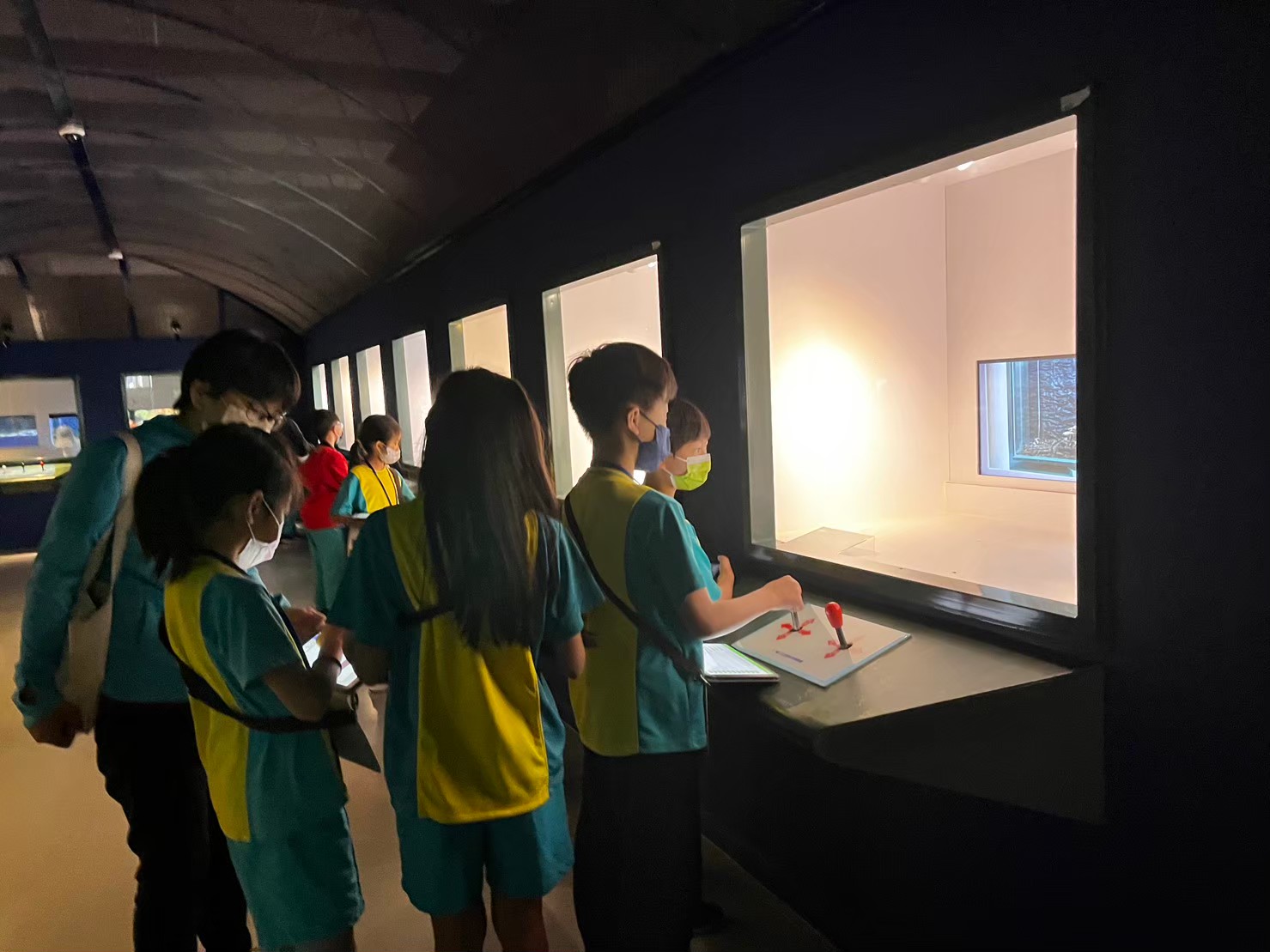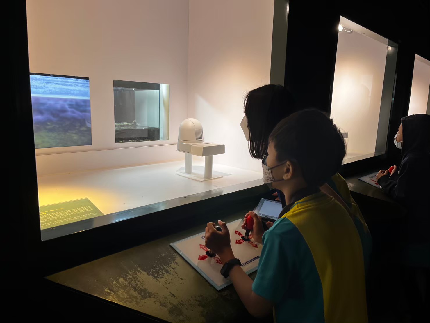 水生動植物展館內,孩子們可以透過搖桿控制顯微鏡,由電腦控制的顯微鏡放大35到280甚至500倍,更方便觀察、記錄水生動植物的細微構造。