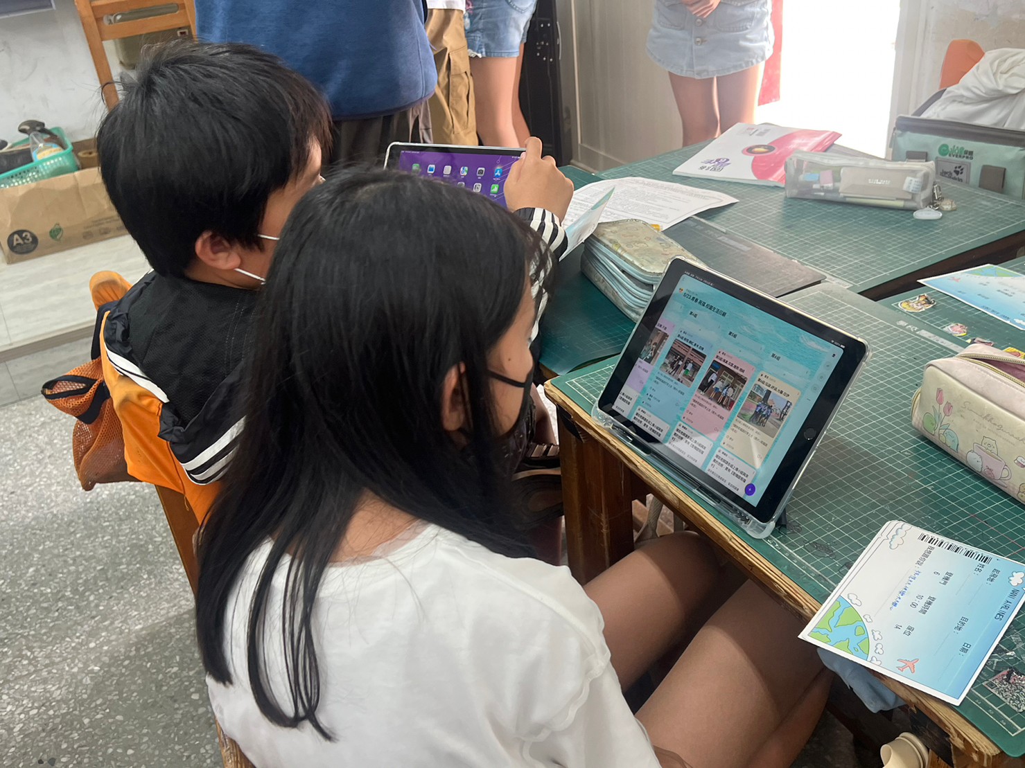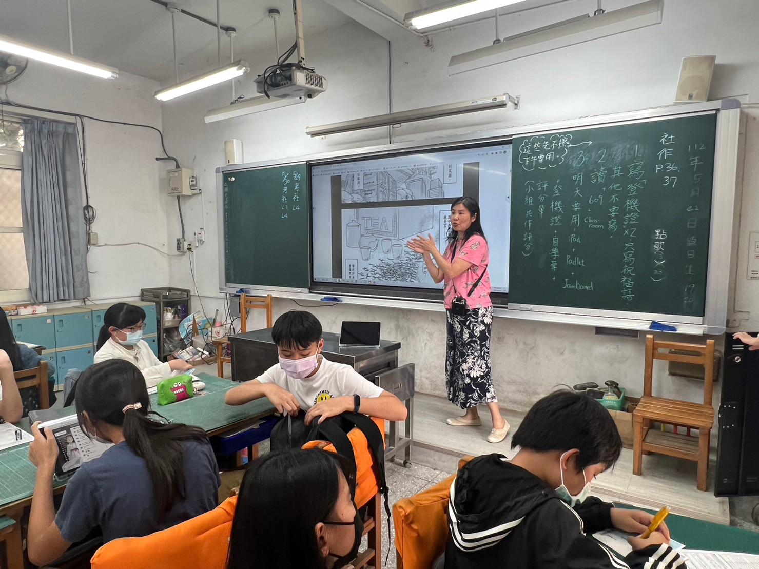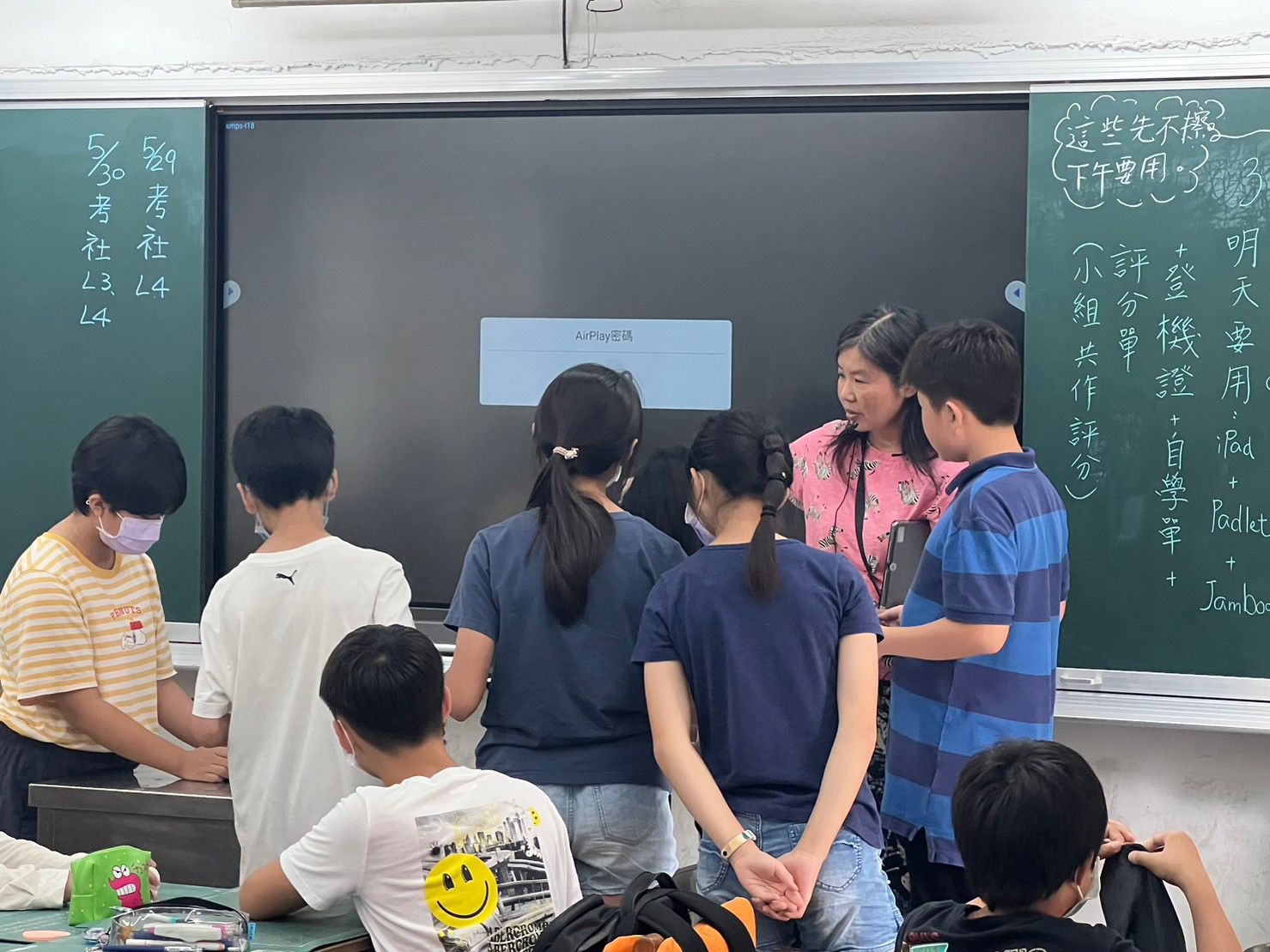 609學生們課前表示壓力山大,正式上場時快速融入,尤其是學「多屏無線投影」,大家邊玩邊學,有勇氣接受挑戰(課前無演練),學生非常開心!課堂操作:大屏+iPad,人手一台iPad,所以今天有46台iPad上場喔!