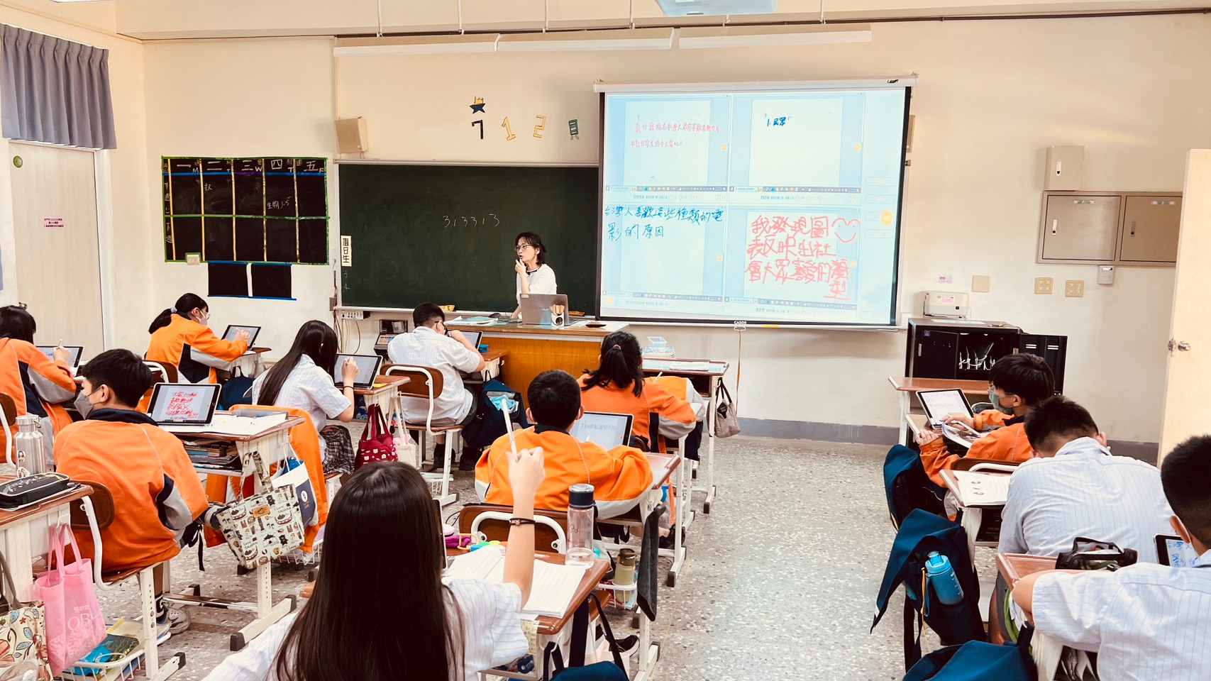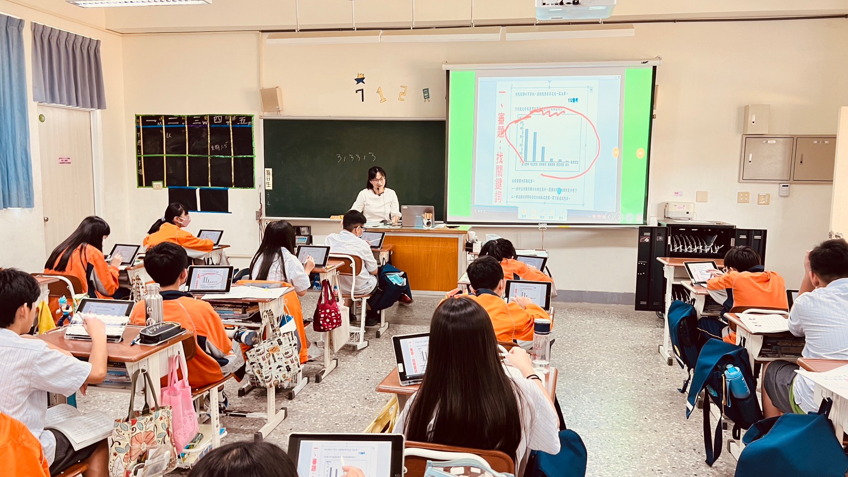 1120523七下國文第九課「音樂家與職籃巨星」是一篇淺顯易懂的論說文,內容需花太多時間講解,因此,藉此機會教導論說文三要素:論點、論據、論證。這一課教學主軸放在:審題與論點,並讓學生學習如何寫出一則具體有效的主旨句。教學情況如下:1.教師利用Canva簡報講解學習的內容。 2.學生利用平板vivoclass練習劃關鍵詞、練習用句型組會關鍵詞,並寫出主旨句。3. 利用vivoclass-IRS功能,呈現學生的文句並檢討說明,讓學生能夠彼此觀看,並有實際練習的機會。