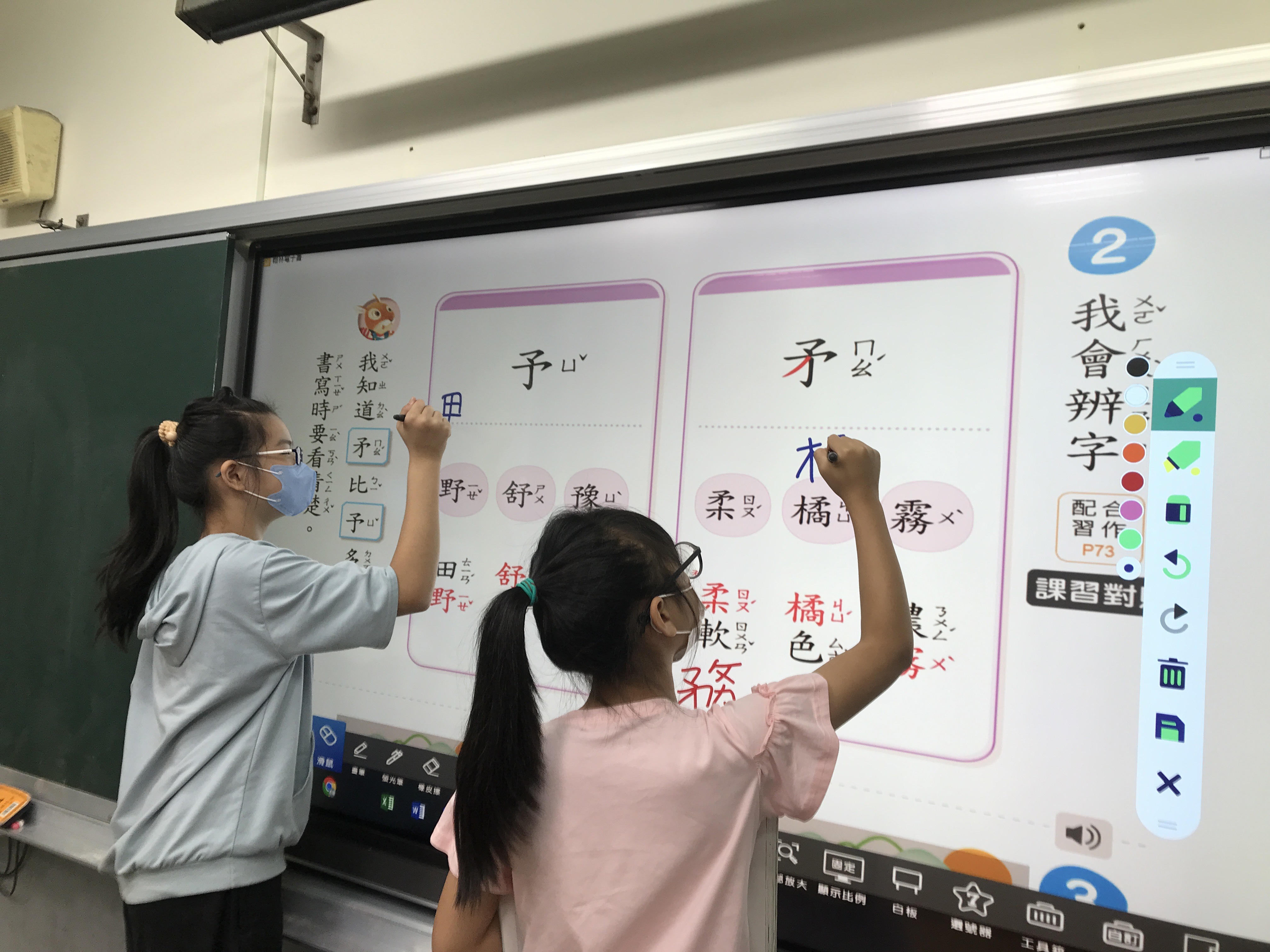 隨著數位科技的進步,帶動了學生學習型態的改變。為了朝山國小的教學環境進行數位轉型,讓學生的學習不因設備的限制,侷限在單向的學習模式。朝山國小去年11月申請競爭型計畫,校長、佳芳老師親自到會場進行計畫報告。感謝市府核定本校4片鑲嵌式86吋大型觸控式互動顯示器及配合觸屏尺寸的黑板,分別安裝於4間中年級教室。安裝完成後可以配合本校雙語教育以及生生用平板的數位教學,增進學生與教師間的互動頻率,提高學生學習興趣與效果。透過大屏的安裝,建置智慧教室進行翻轉教育,教師們在課程設計與教學也因有數位科技的輔助,得以更多元、創新的方式呈現,讓課堂中教與學的風景,充滿樂教愛學的氛圍。