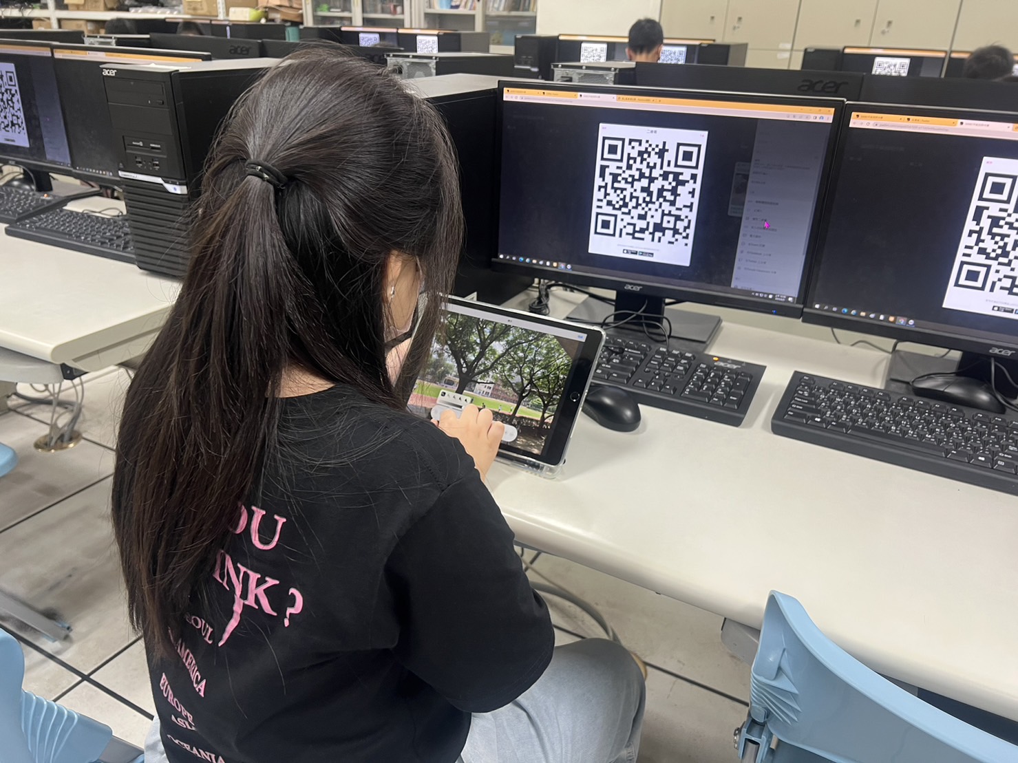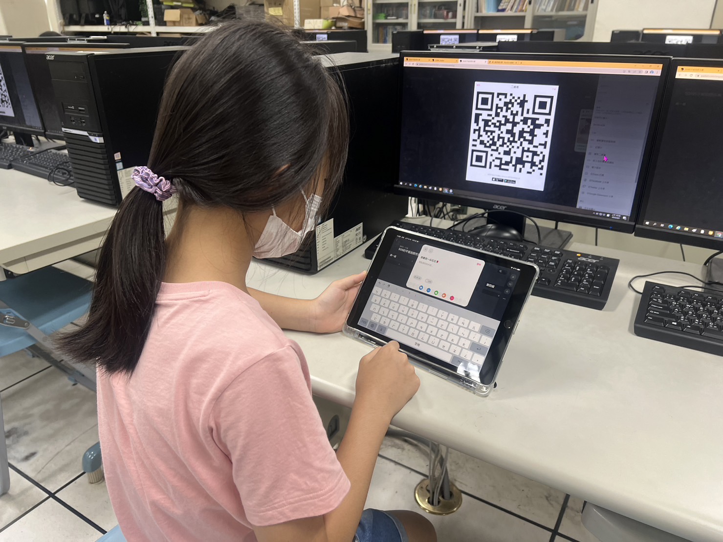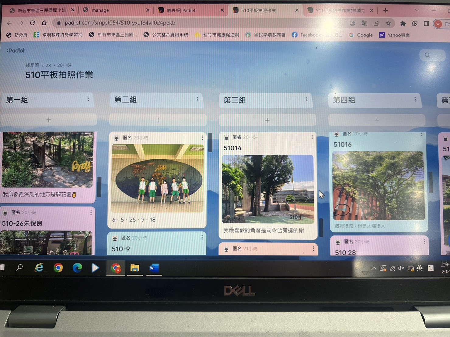 今天進行延伸課程,在校園中,請學生介紹自己最喜歡的校園一角,或是對自己有特殊意義的地方,透過鏡頭介紹給大家。小朋友很快的到自己的角落去拍照,回到電腦教室進行後製,接著掃描Qrcode連上老師給班上的Padlet,在自己的組別上上傳自己的作業,並在留言區留下自己的姓名資訊及圖片說明。另外每一組還要繳交一張組員大合照,介紹自己這一組成員喔。