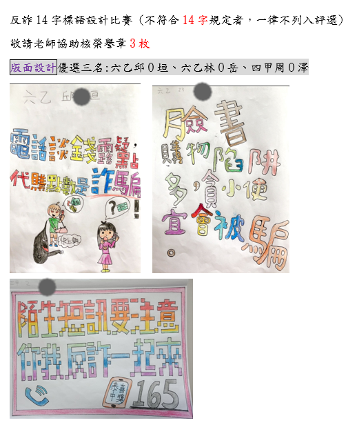 1120522內湖國小14字反詐標語競賽:版面設計組優選