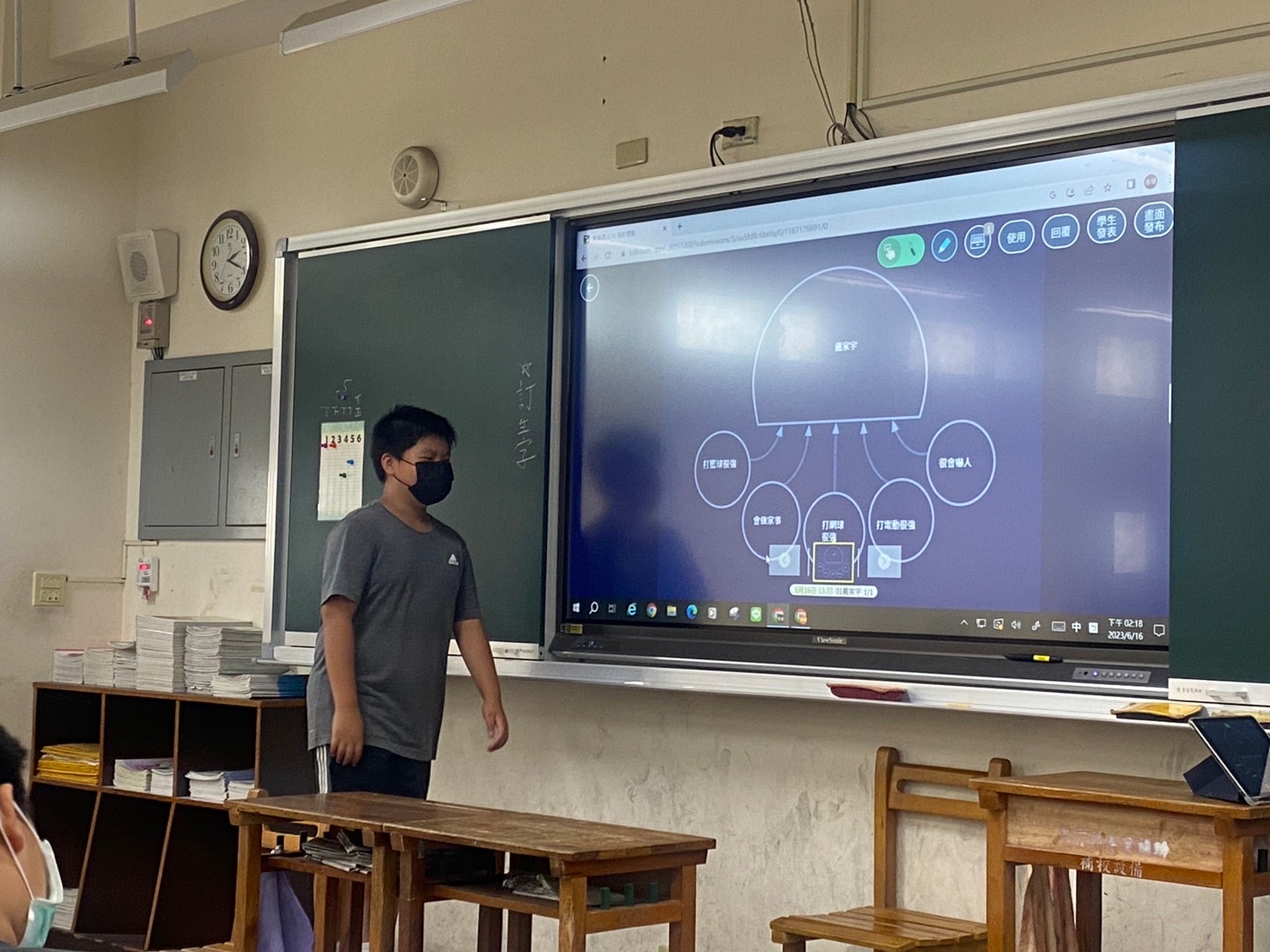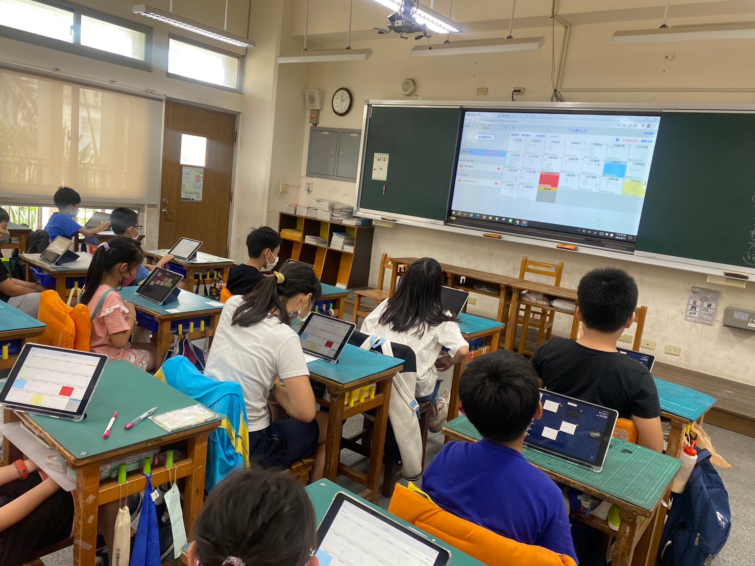 配合數位學習精進計畫,五年丁班陳香璉老師,運用課堂互動APP-loilonote搭配綜合課,讓學生互相寫出對方的優點,透過平板的即時互動,搭配大尺寸電視的放映效果,完成一場高互動的綜合課程。