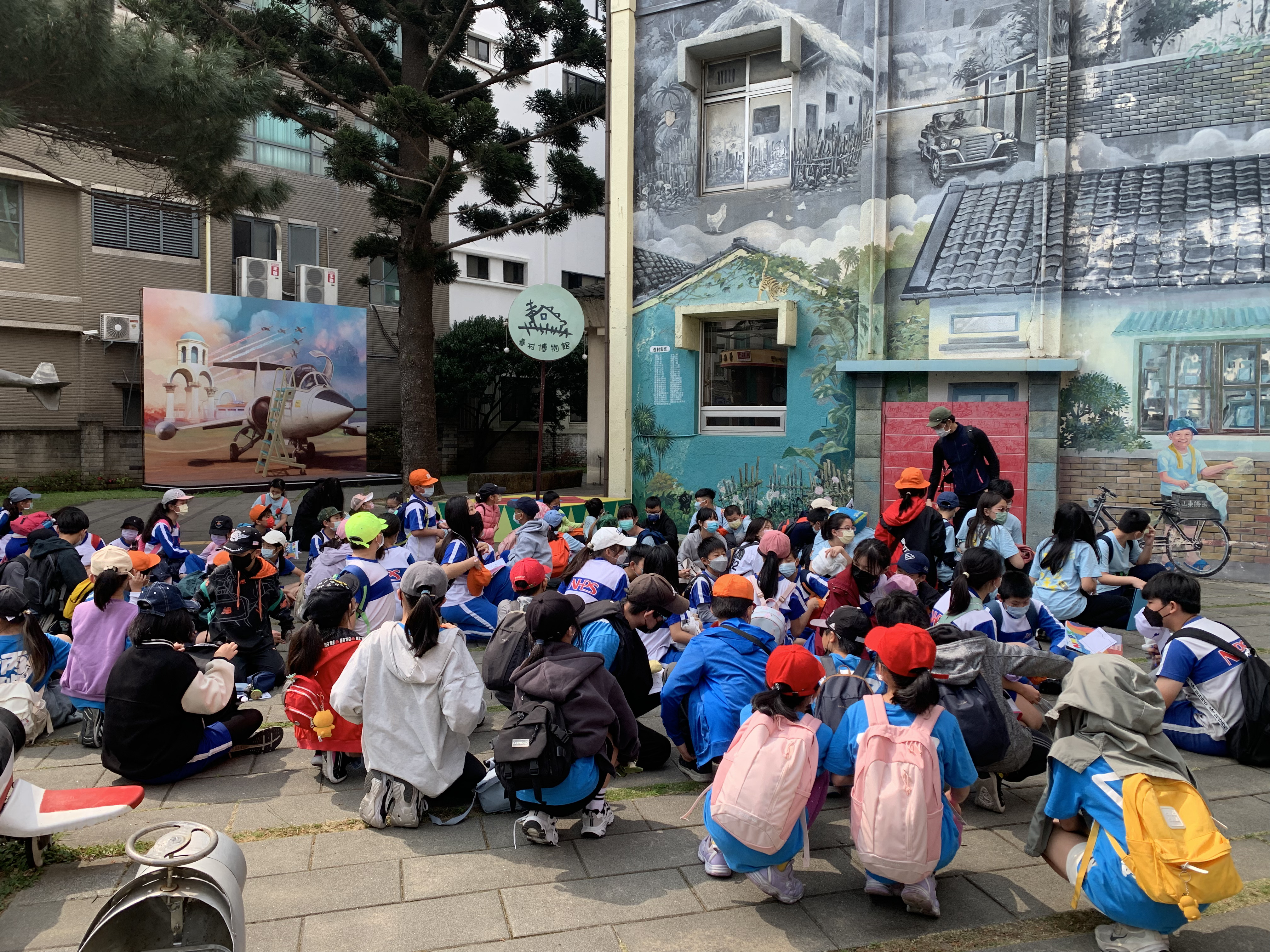 112年3月17日,內湖國小的五年級孩子們戶外教學,第二站步行到鄰近的眷村博物館。在這裡不只可以看到時代背景下大量播遷來台的軍人與眷屬如何安居,更可以在陳盈秀老師詳細介紹後欣賞外牆等藝術家的壁畫作品,孩子們聽講之餘無不四處尋找學習單上的隱密簽名解答。