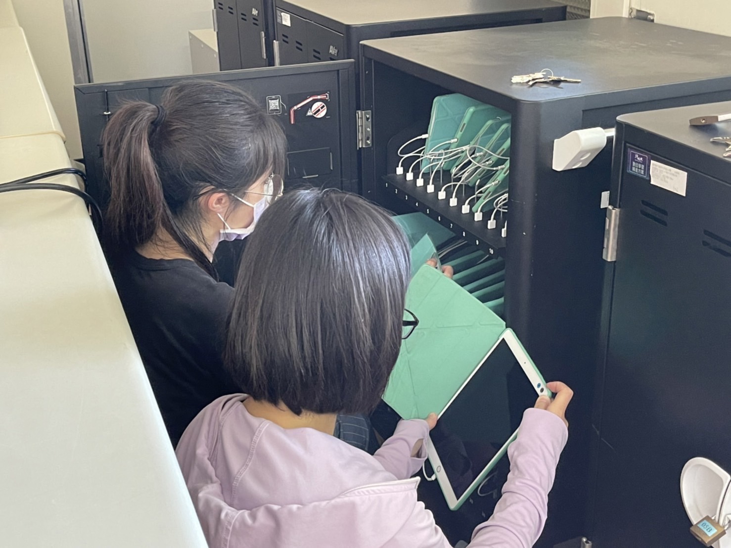 暑假是學生在校外學習的日子,也是每位老師充電進修的時間,此時教務處的資訊組也有一項重要的任務,就是整理並更新全校的平板車。透過教育部「生生用平板」的計畫,竹小亦有許多ipad可以提供老師在課堂上使用,讓教學更多元。但因為數量龐大,也需要定時更新與維護,所以這次暑假資訊組長若雯老師與四位實習老師瀅慧、姵澐、淑意以及惟婷,一起一台一台的確認,希望到九月份開學時能讓老師、學生,都能有最新更新的平板可以使用,讓教學與學習無遠弗屆。