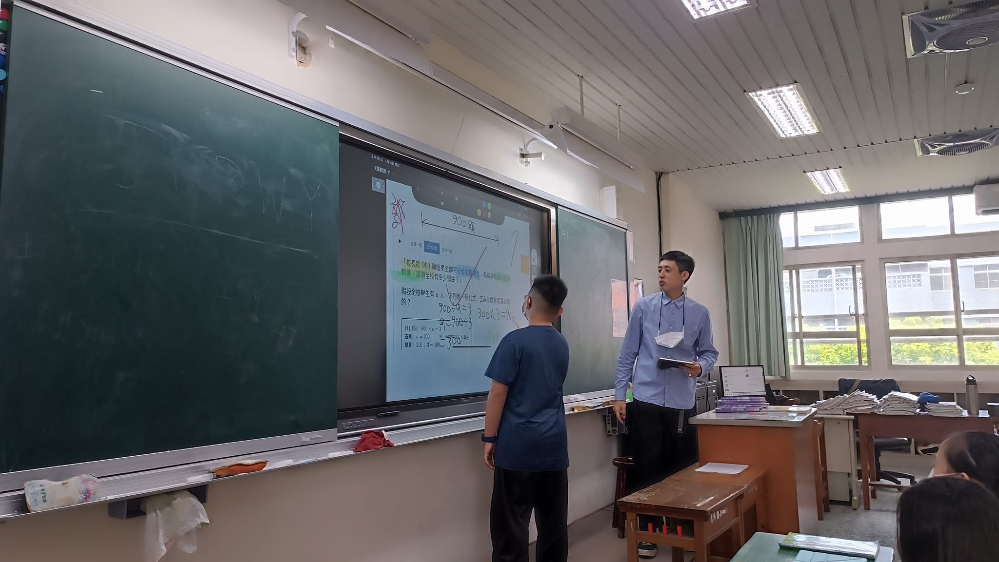 這堂課以均一平台於晨光前測作為課堂導入,讓王新語老師能夠更準確地了解學生們的學習基礎,並有針對性地進行後續教學。為了促進學生間的合作與學習,王新語老師組織了小組共學活動。他利用iPad Airdrop技術將題目傳送給學生們,並鼓勵他們使用觸控筆進行解題書寫。