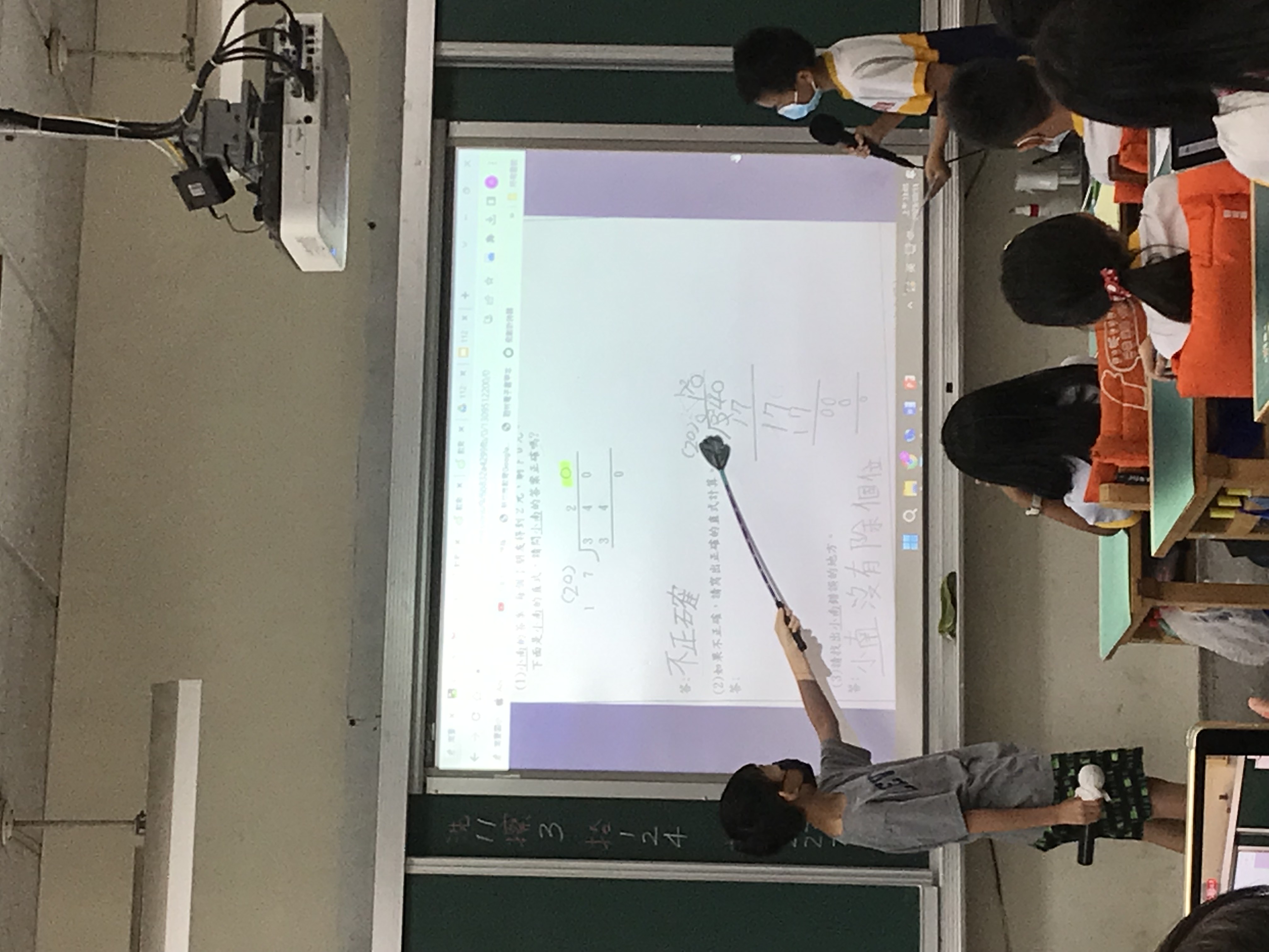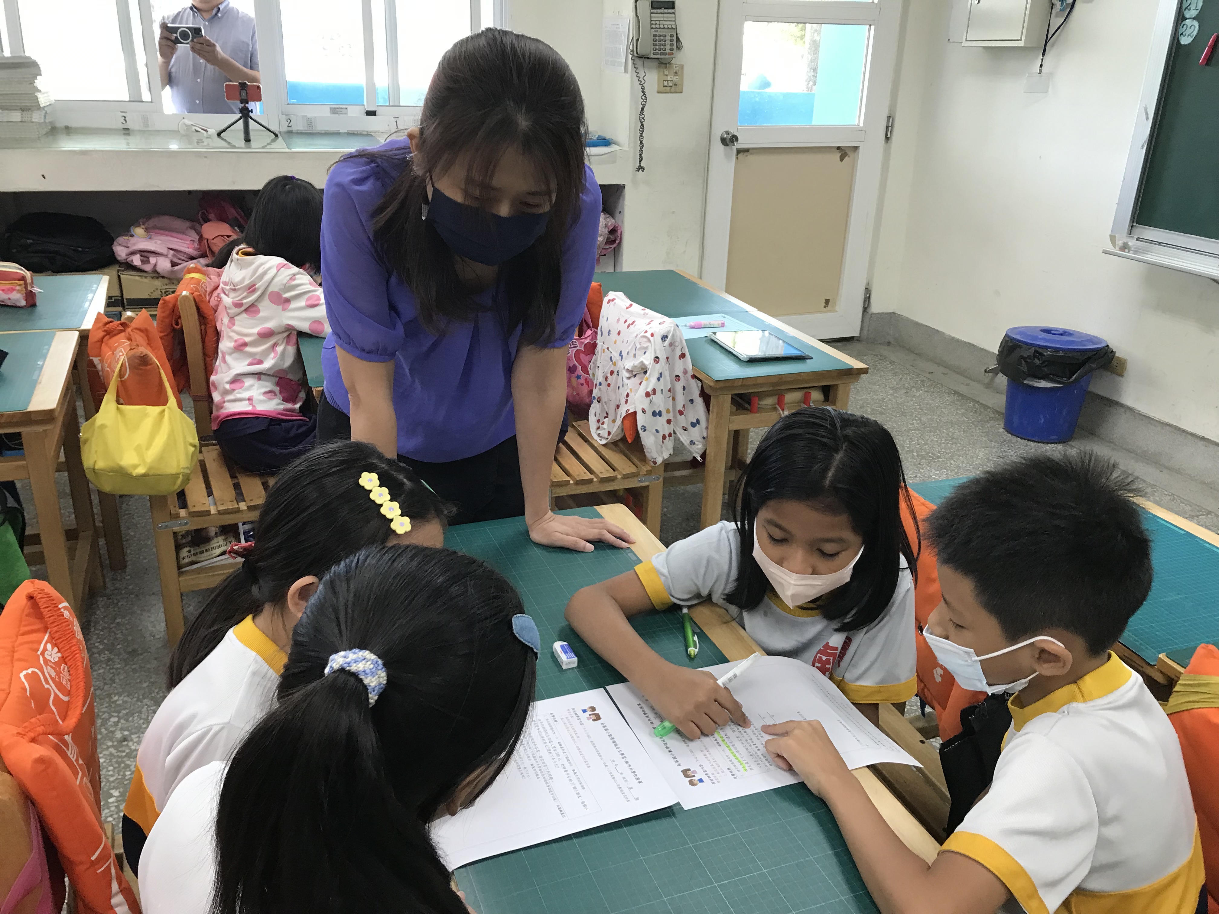 本校四年丁班郭秀怡老師透過因材網以及四學教學策略,讓學生學習數學直式算則。一開始,先透過因材網設計前測找出學生在直式算則的迷思,再設計課程與學習單讓學生發現自己的錯誤,再藉由學生互學共學解決彼此的迷思,建立正確直式算則概念。除此之外,也學習了如何和同學合作分工,學習到如何分享自己的想法以及聆聽與回饋的能力。例如,學生在估商的部分有不同的做法,在分享時能彼此交流,最後老師統整,師生彼此收穫滿滿。也感謝台中教育大學楊智為教授蒞臨指導。