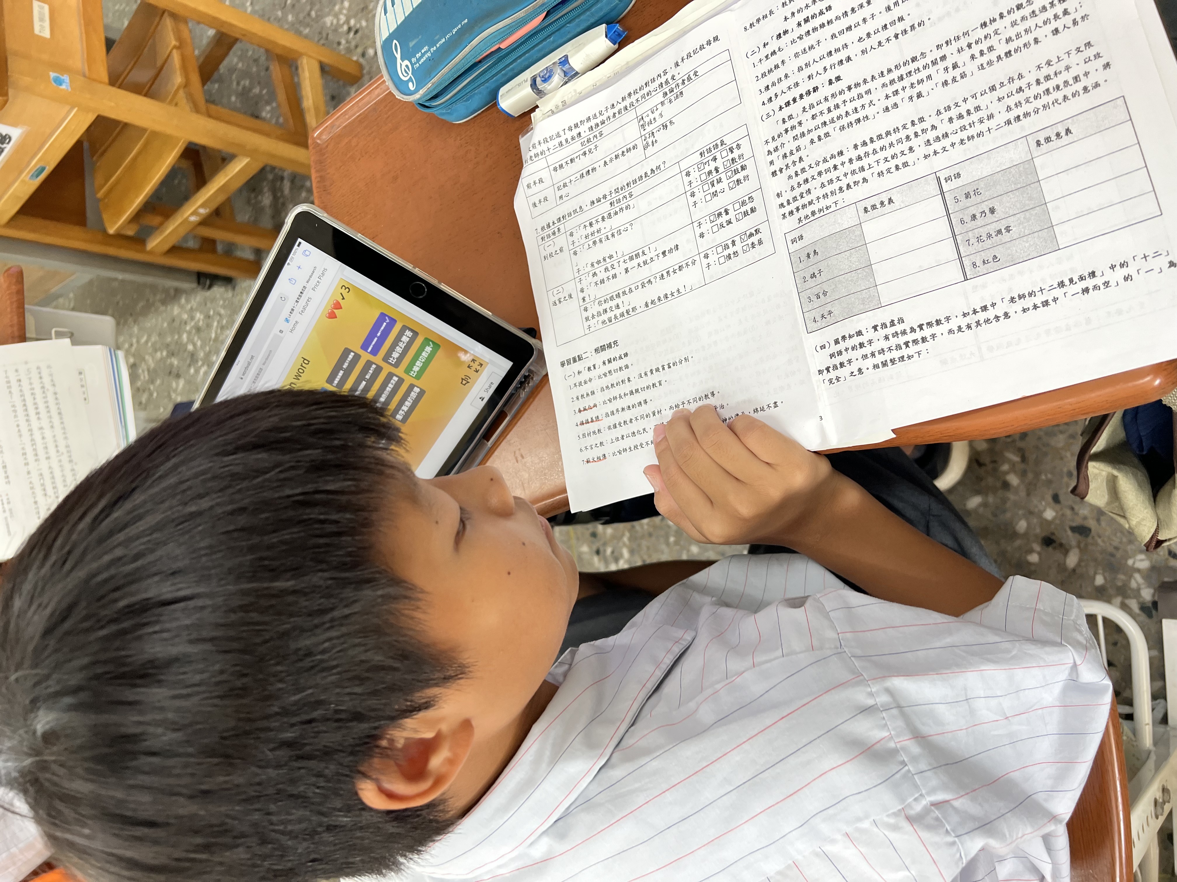 學生藉由《老師十二樣見面禮》自學講義先行閱讀課文延伸成語,再透過 Word Wall 「填字遊戲」檢測自學成果。使用 Word Wall 上的遊戲互動功能,讓學生進行成語的配對遊戲,以確保他們能夠正確地將成語與其含義配對,再藉由挑戰次數、時間等設定,增加測驗的難度,刺激學生精熟學習。除此之外,答題結束後,請學生觀看全部測驗成語,進行學習的歸納與統整。