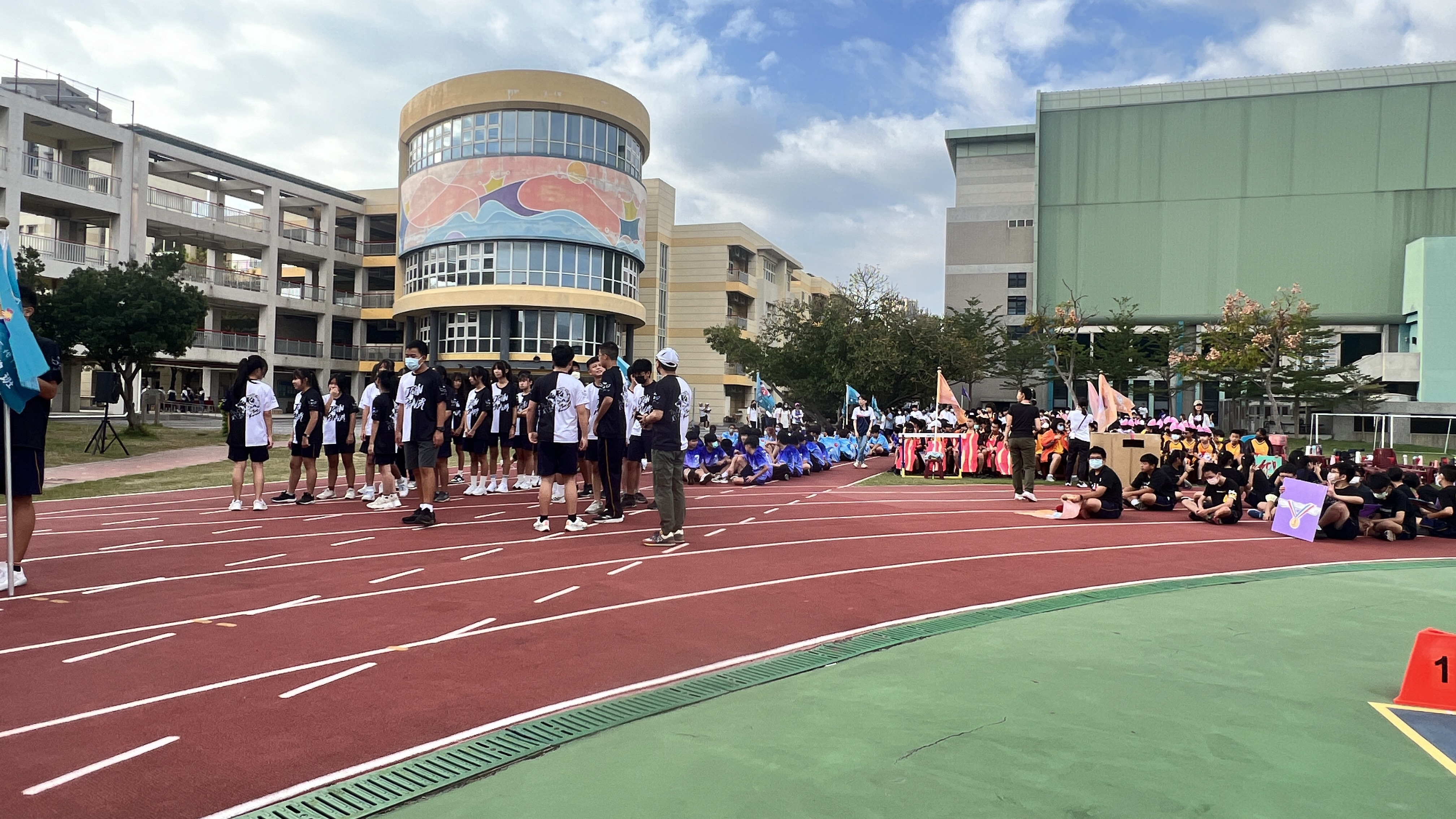 在運動會正式開始前,主持人先介紹待進場的各個年級學生。首先是九年級「環保2代」的學生,他們準備了精彩絕倫的大會舞表演。接著是八年級「運動2代」的學生,將展開義賣活動,歡迎現場嘉賓一同參與。最後是七年級「教育2代」的學生,他們設計了別出心裁的創意班呼,向貴賓致意。