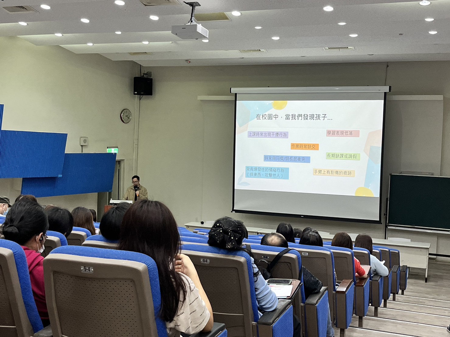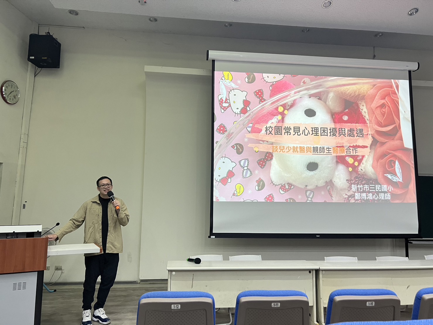 今天真的很謝謝鄭博鴻心理師,非常用心的準備資料,讓老師們獲益良多,除了了解校園中常見上的困擾與處遇外,相信這場演講也能讓老師們得到了許多共鳴、放鬆心情。